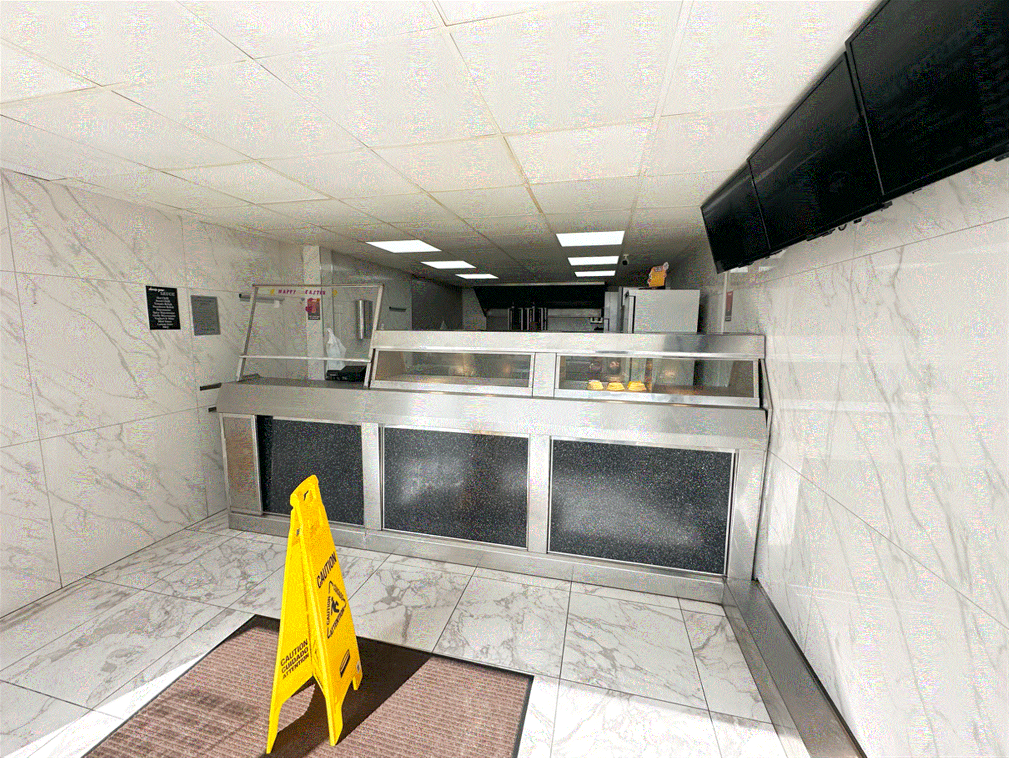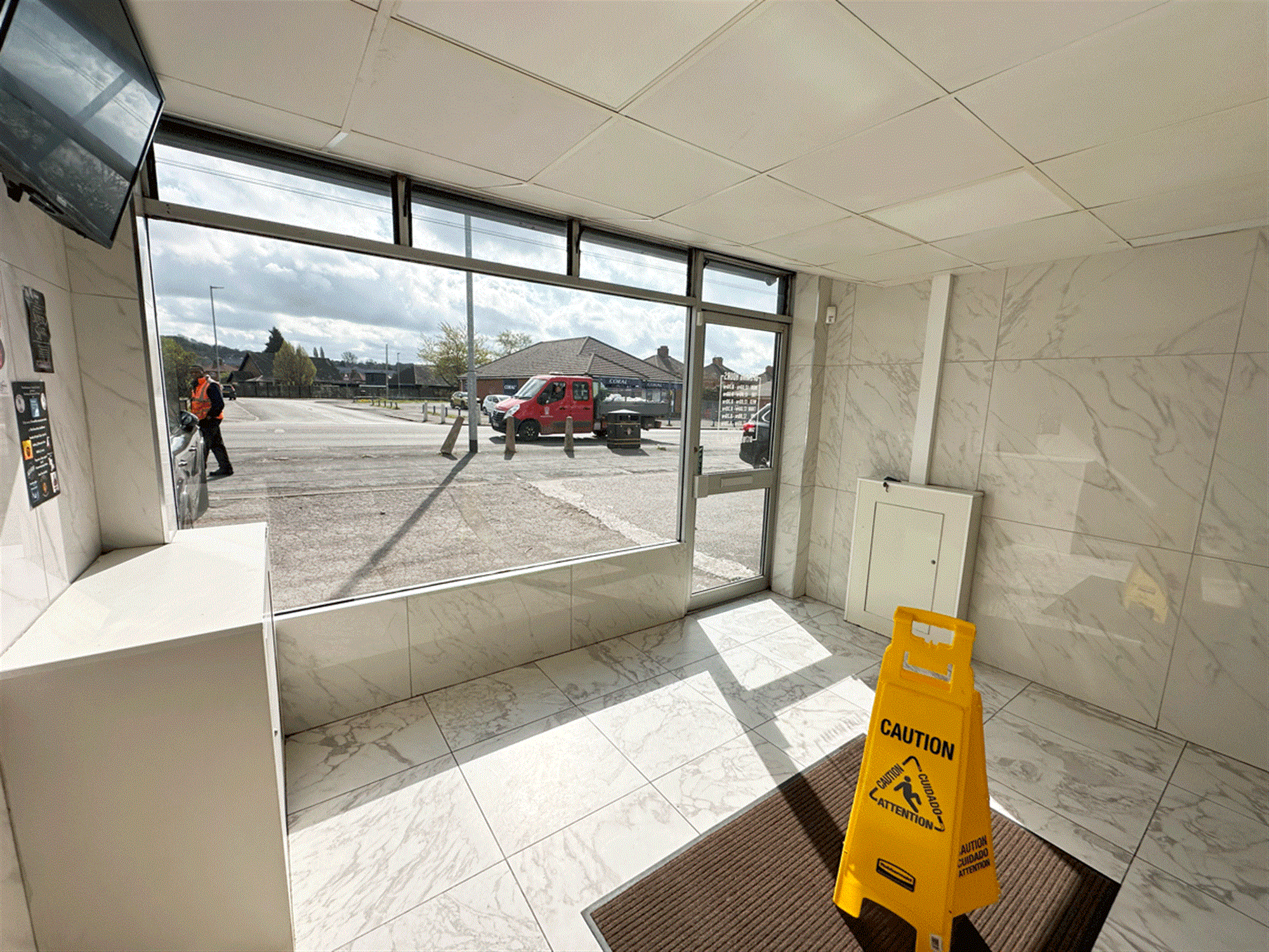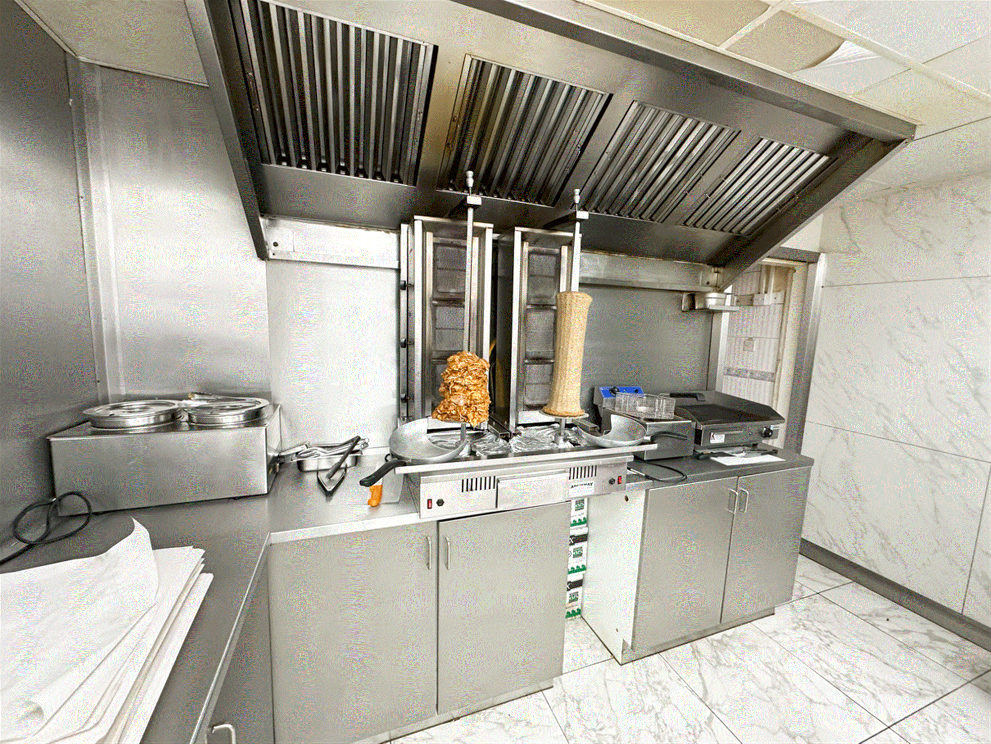 Parking to front for 4 vehicles, electric shuttered front, waiting/ordering area, serve counter with 2 pan, 2 scuttle, 2 display box range, open plan kitchen providing large free-standing bain marie, hot plate, preparation area, kebab area, cold storage, small store cupboard, lounge, chipping room with rumbler and chipper, exit to side providing walled/gated side parking for 4, staff W/C, large garden and garage.