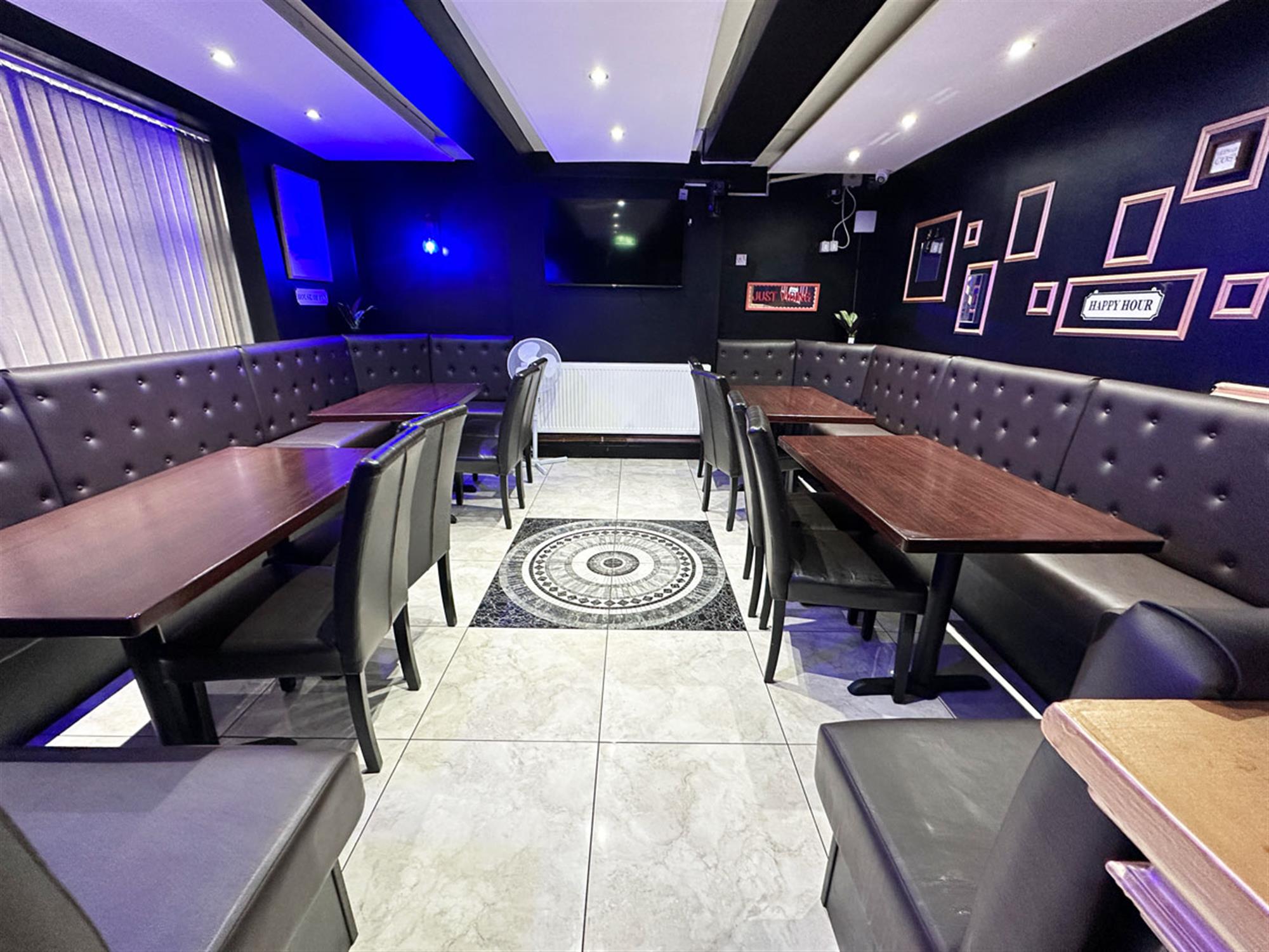 Large detached property, entrance, seating area for 30, 'L' shaped bar, seating area for 25, dance floor, seating area for 25, kitchen providing 6 burner oven, 3 large single burners, preparation area, cold storage, washing up area, 2nd kitchen providing cold storage, tandoor oven, washing up area, charcoal grill, preparation area, 10 burner stove, ladies & gents WC and basement providing storage.