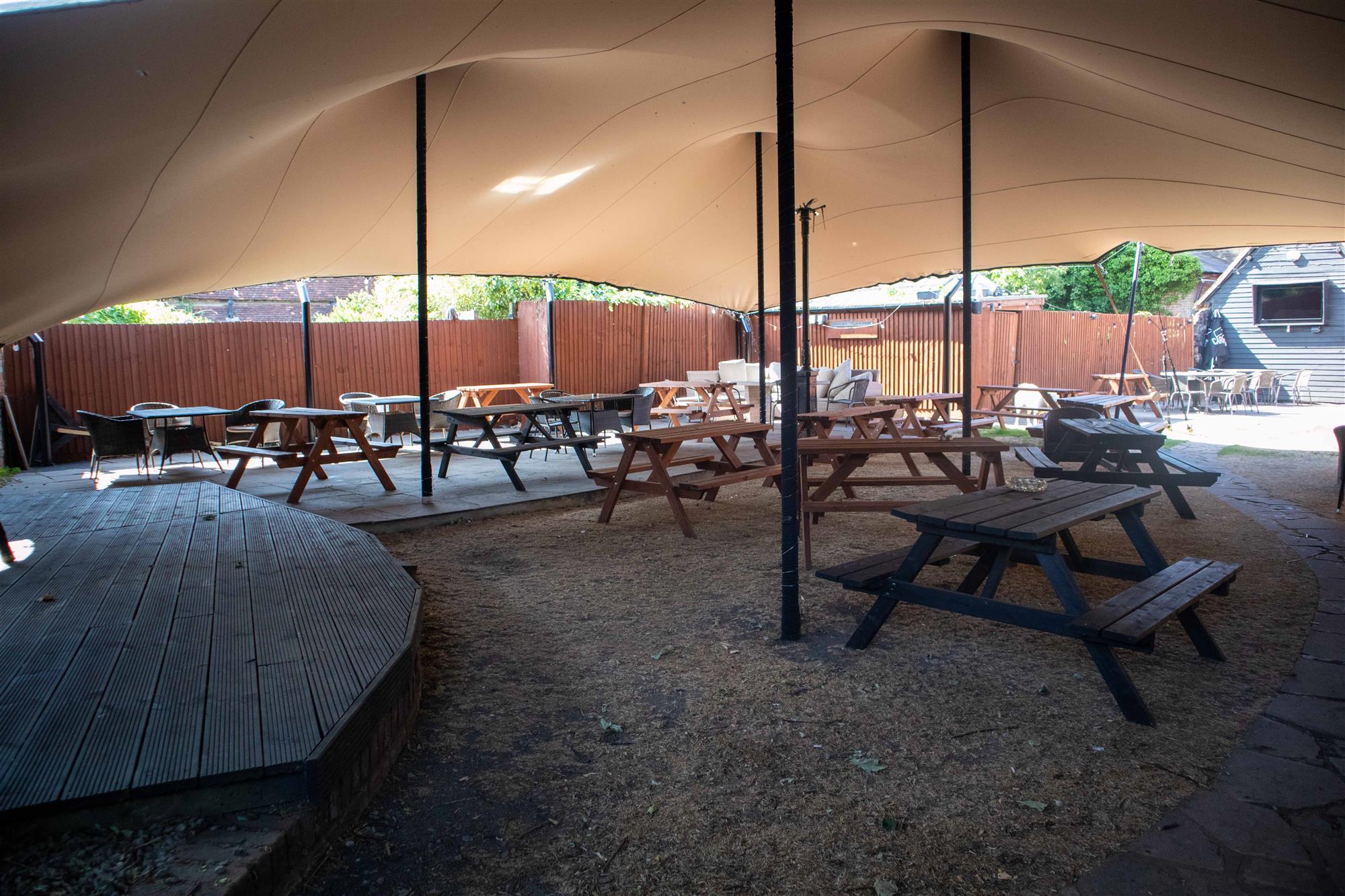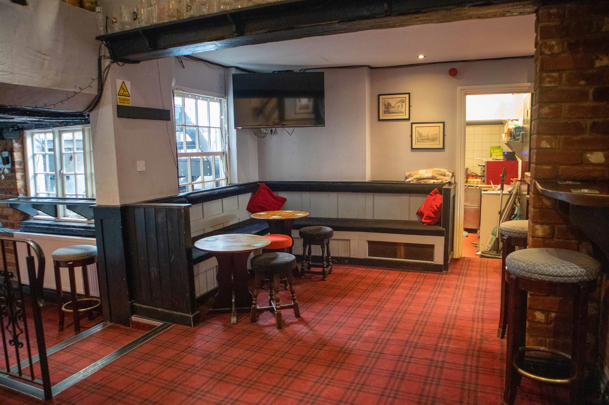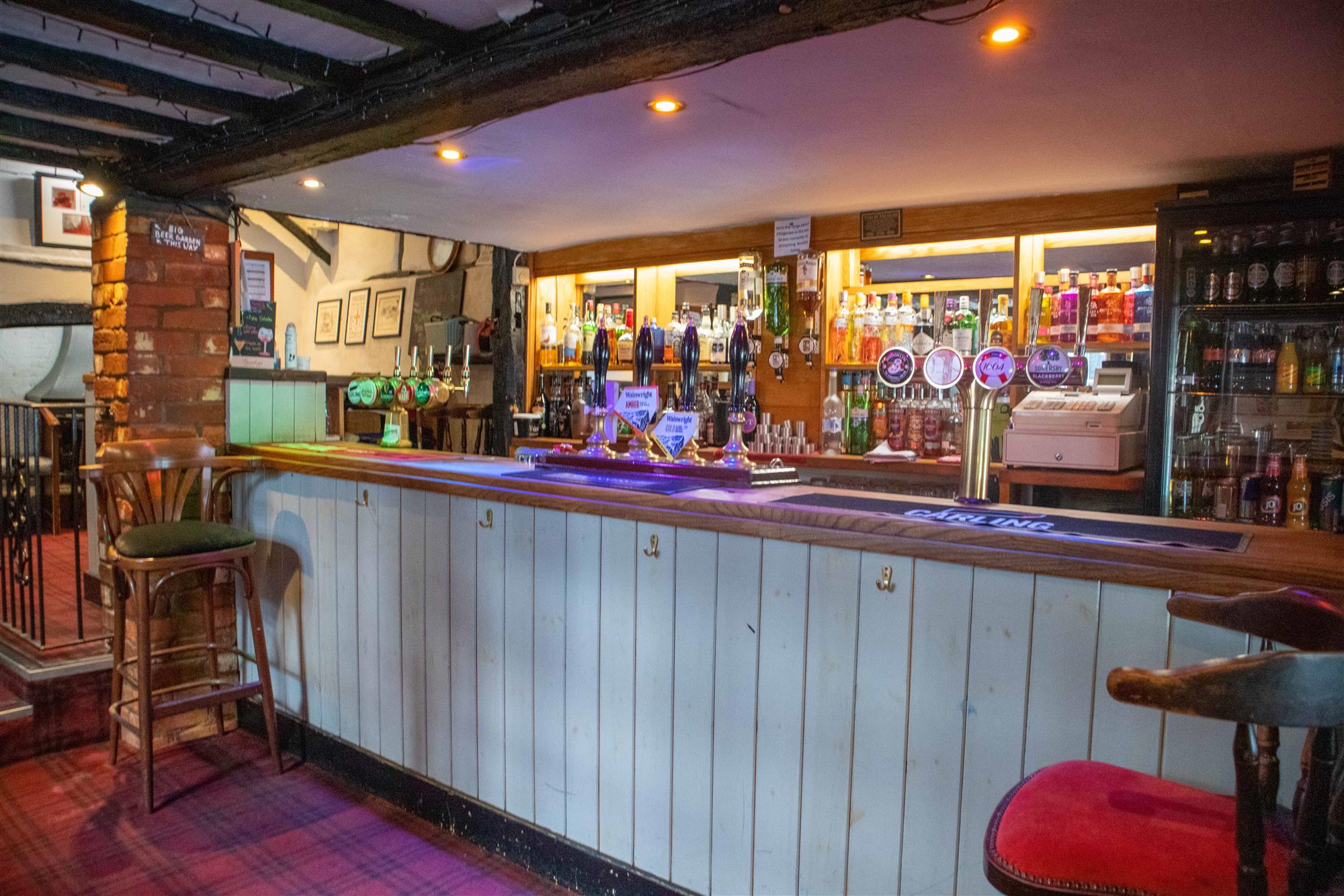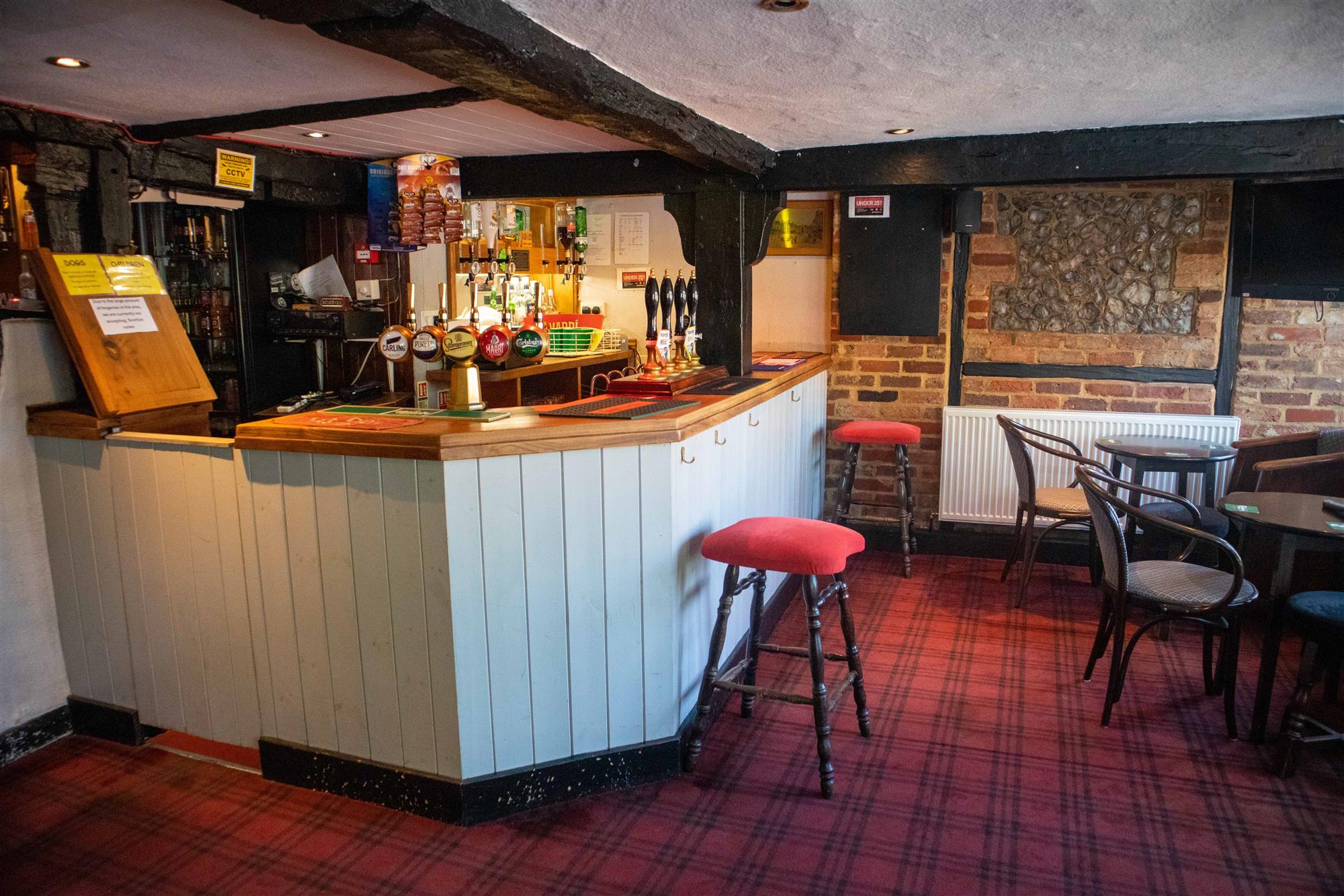 - BAR: A three-tiered traditional bar area presented with carpeted flooring, exposed timbers and central bar servery. Seating for 30-40.