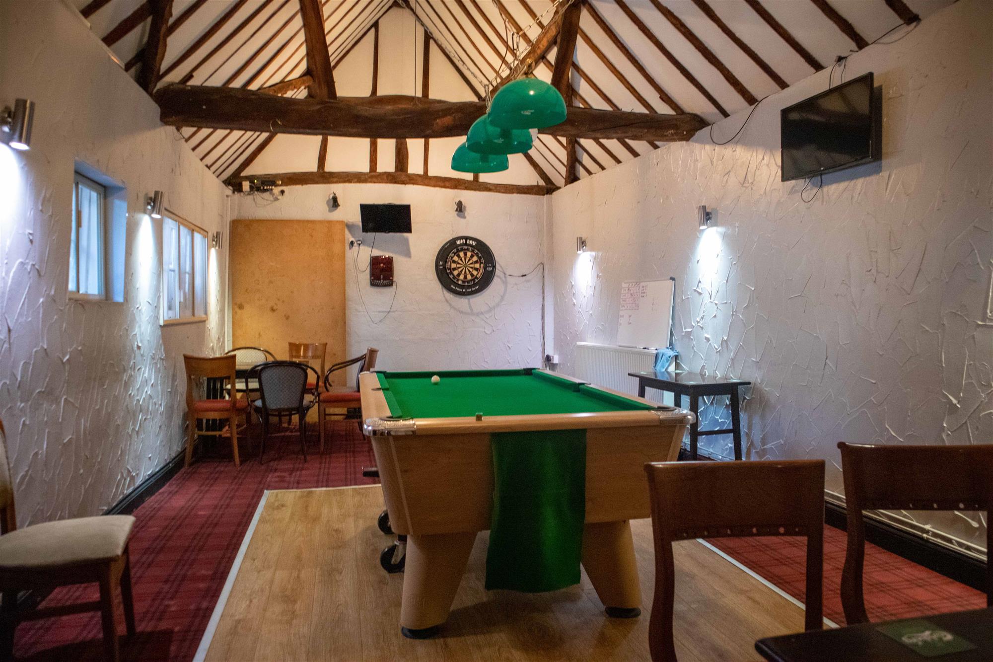 - FUNCTION/GAMES ROOM: With vaulted ceiling, pool table and darts board.