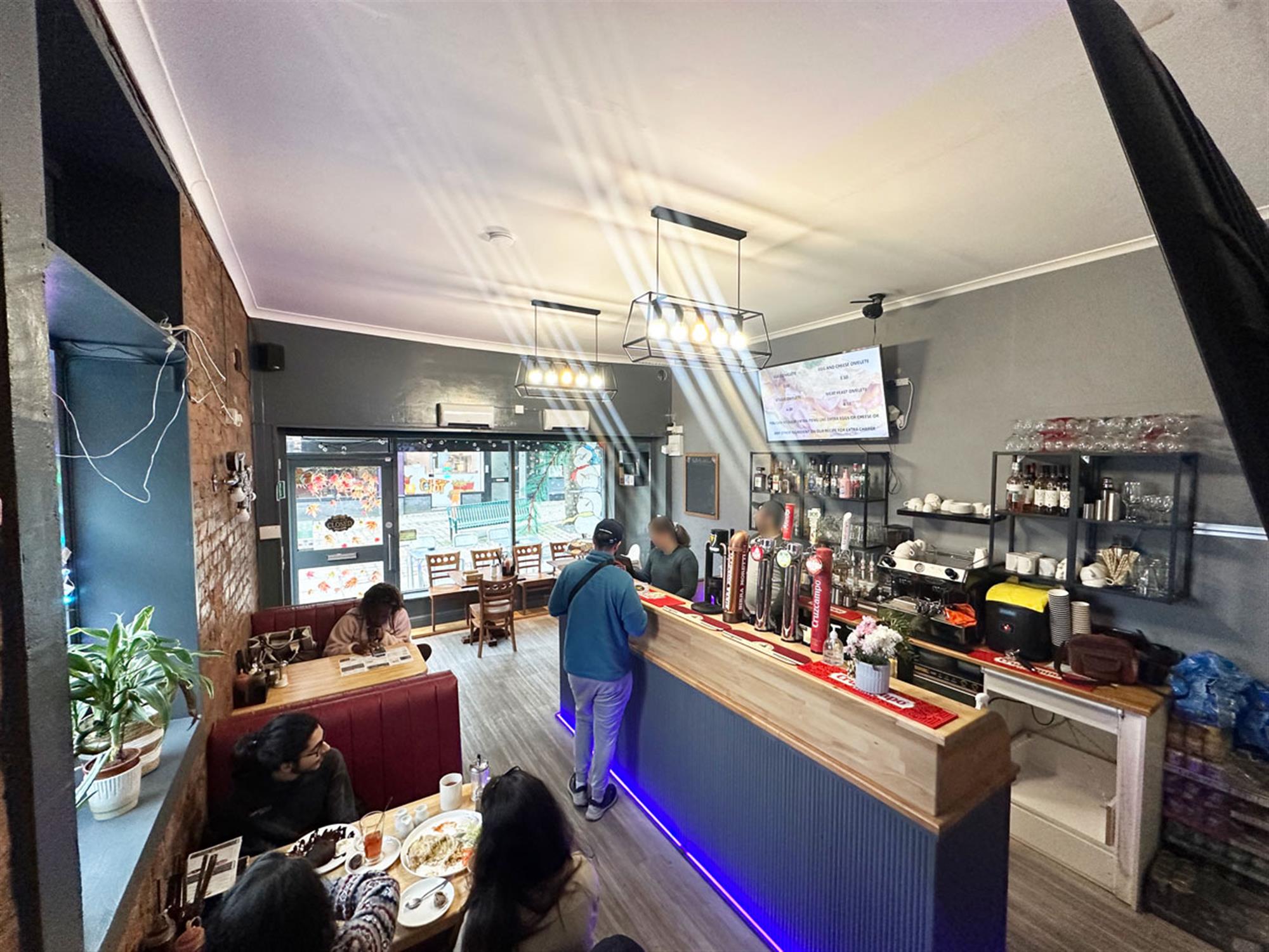 Business is located on the end of the parade, by busy pedestrianised street/road, railway station & large church.