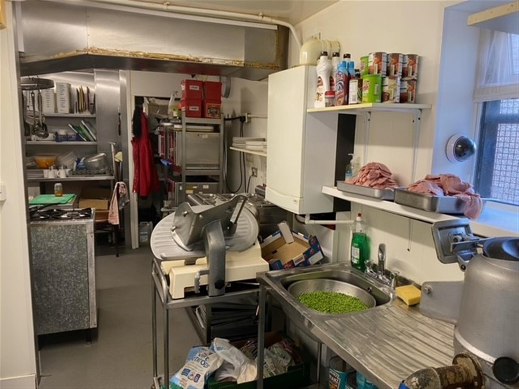 The main kitchen houses ample work surfaces, a fully equipped washing-up kitchen area, a built-in and fully shelved storage cupboard and a full range of well maintained, industry standard catering appliances including a 3-burner flat-top hob with a feature, separate and adjoining dedicated oil-burning egg cooker, 24-litre deep-fat fryer, 6-pot wet-well bain marie, 2-pot electric dry-well bain marie, 3 x 1850-watt commercial microwaves, 6-slot commercial toaster, 4-slot commercial baguette toaster, small table-top pizza oven, meat slicer, table-top commercial potato/carrot peeler and numerous commercial upright refrigerator and chest freezer storage units, all of which we understand is to be included in the sale price, and further details of which will be made available upon request to any genuine interested parties.