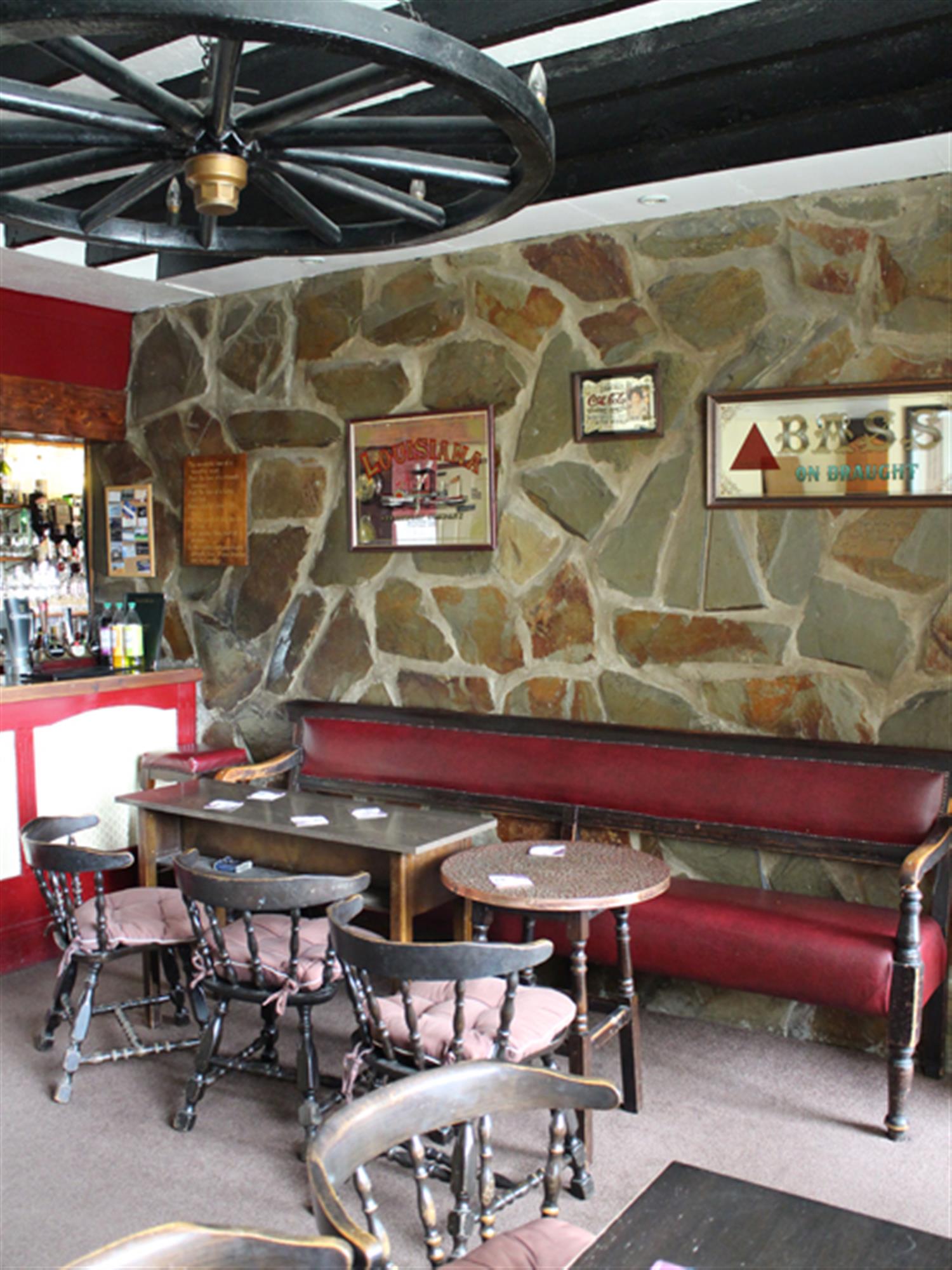 Entrance vestibule leading to trading areas. Large, open plan, two-section LOUNGE BAR/RESTAURANT, comfortably furnished and with partially exposed beamed ceiling and carpeted floor throughout. Section 1 with stone and timber clad bar counter to the interconnecting servery. Fixed bench seating for approximately 12 customers. Archway through to section two, the spacious main restaurant/function area, having mainly carpeted floor, partially exposed stone walls and exposed wood dance floor. This room has a mixture of fixed bench seating, dining chairs and tables to seat 70 comfortably. French doors to trade garden. LADIES’ & GENTLEMEN’S TOILETS.