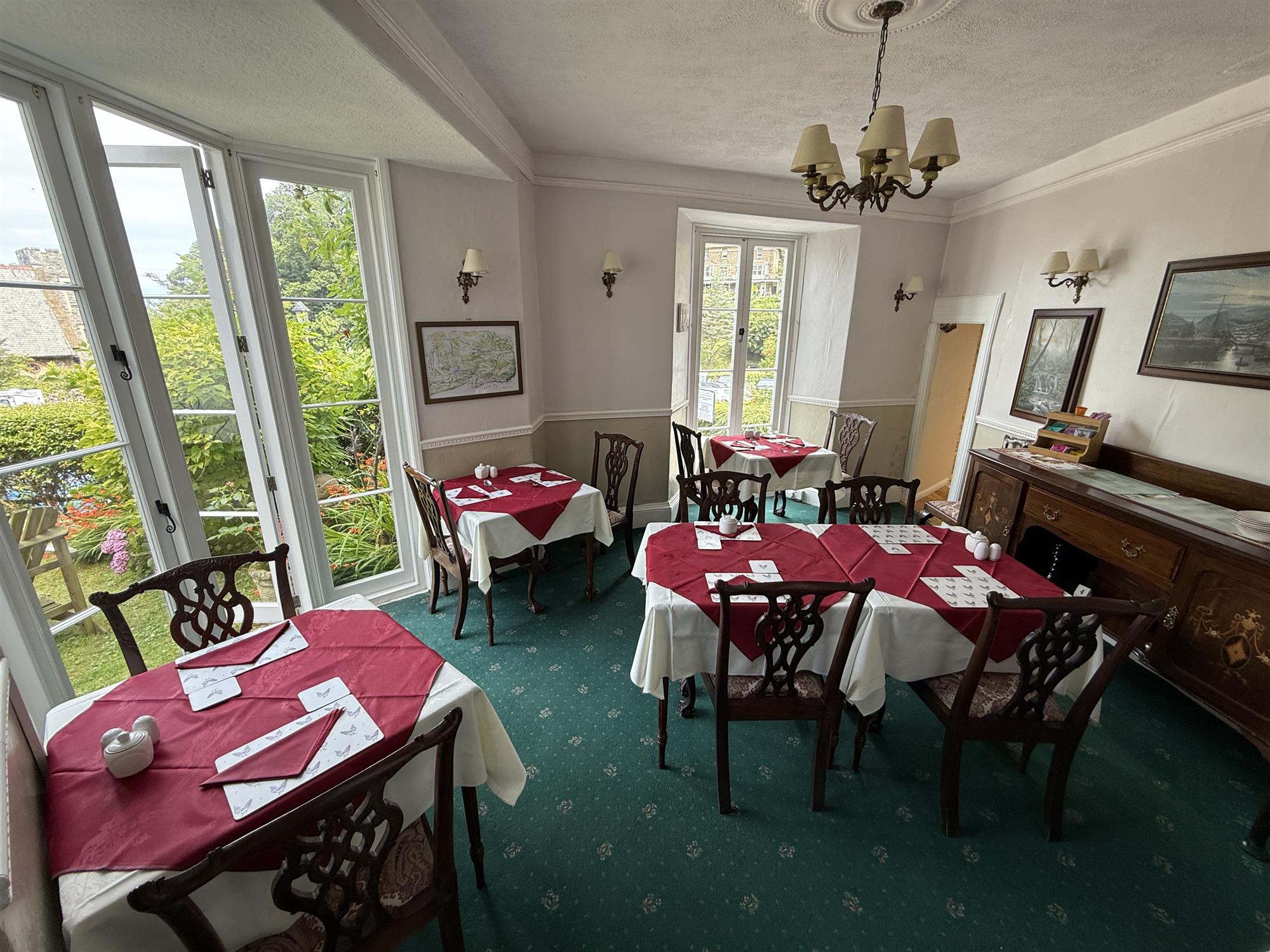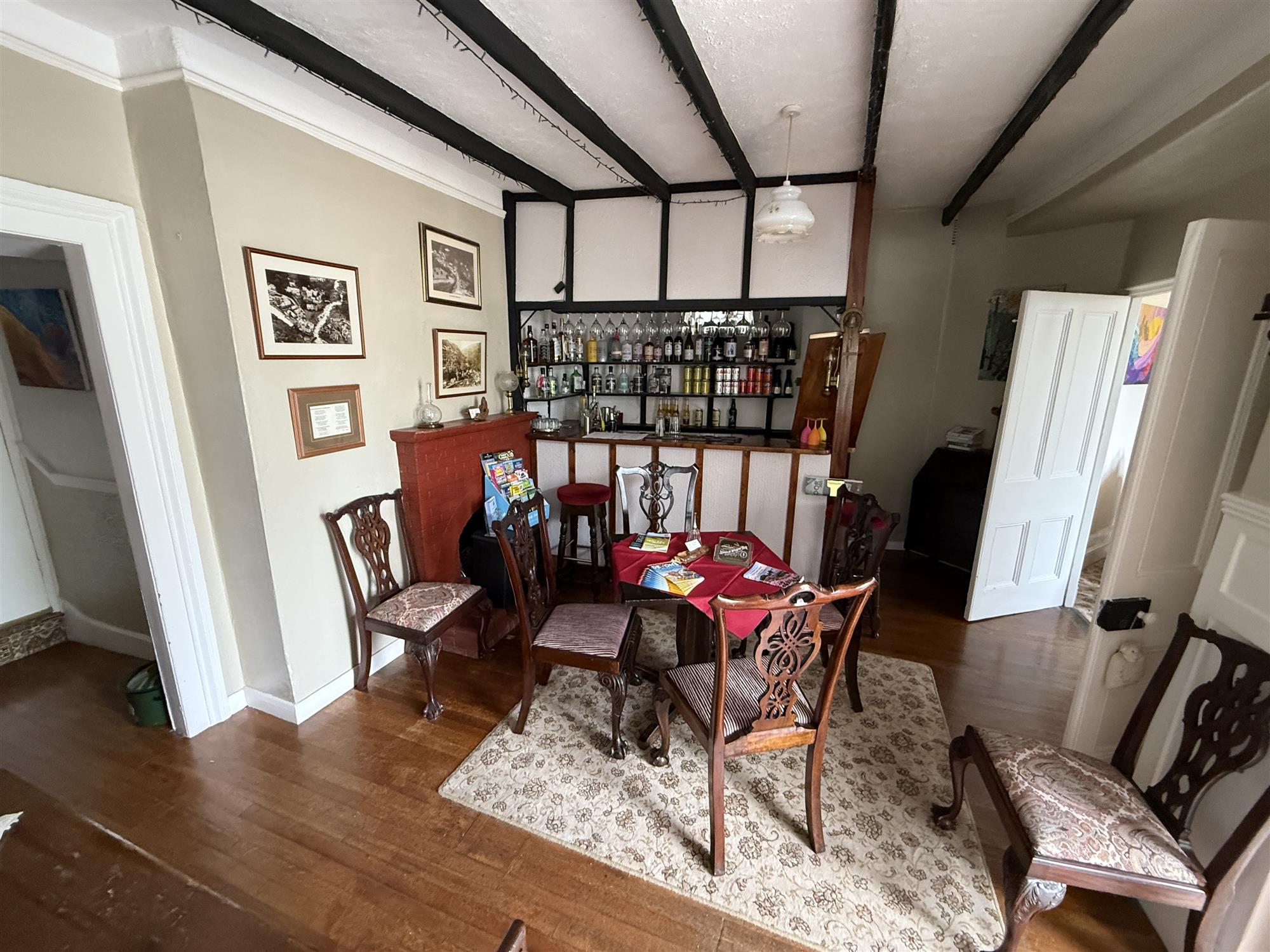 The interiors blend Georgian and Victorian character with contemporary touches. Period details include exposed beams, high ceilings, sash windows and decorative fireplaces. A cosy lounge with feature fire and a bright dining room offer inviting communal spaces. The recently refitted kitchen includes generous worktop space and a casual dining area, perfectly suited to private or guest use.