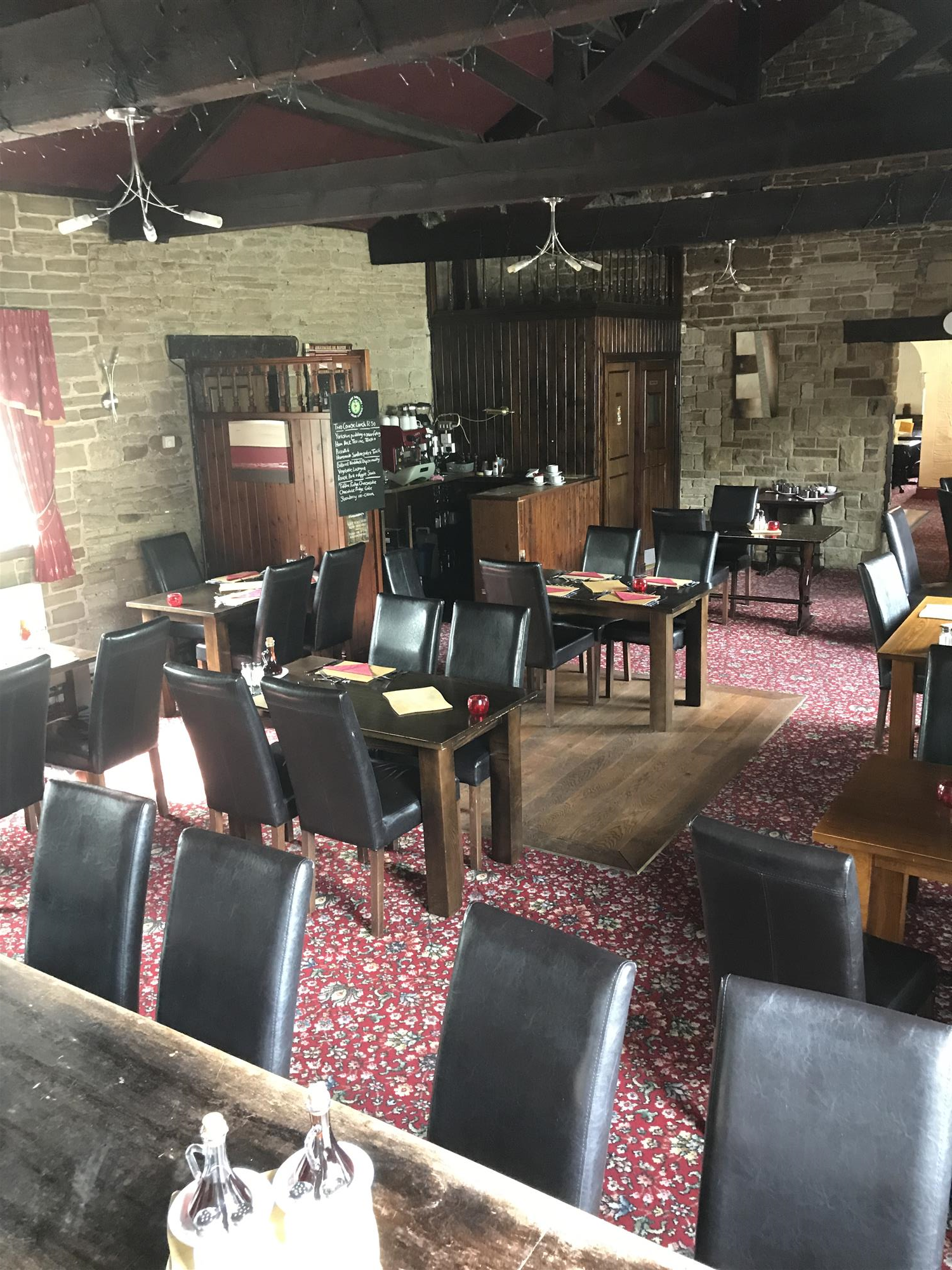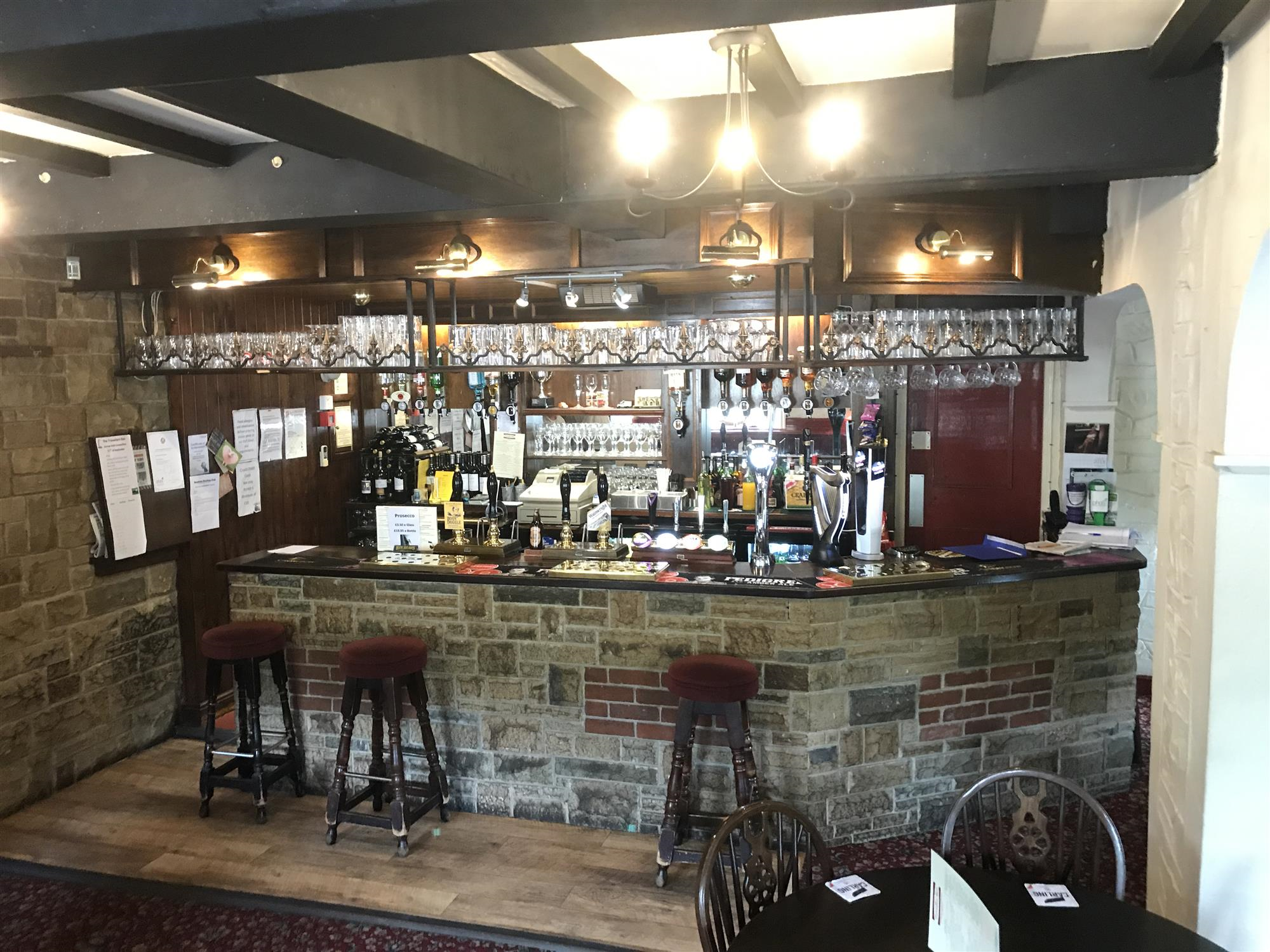 The bar area boasts a wealth of exposed original stone and timber work, mixed solid timber and carpeted flooring, well maintained furnishings for approximately 40 overflow dining covers and a prominent, fully fitted, brick-and-timber built licensed servery with full range of optics, draught and hand-pulled cask pumps, chilled bottle display cabinets, bottle and glass display and storage shelving and electronic till/food ordering point.