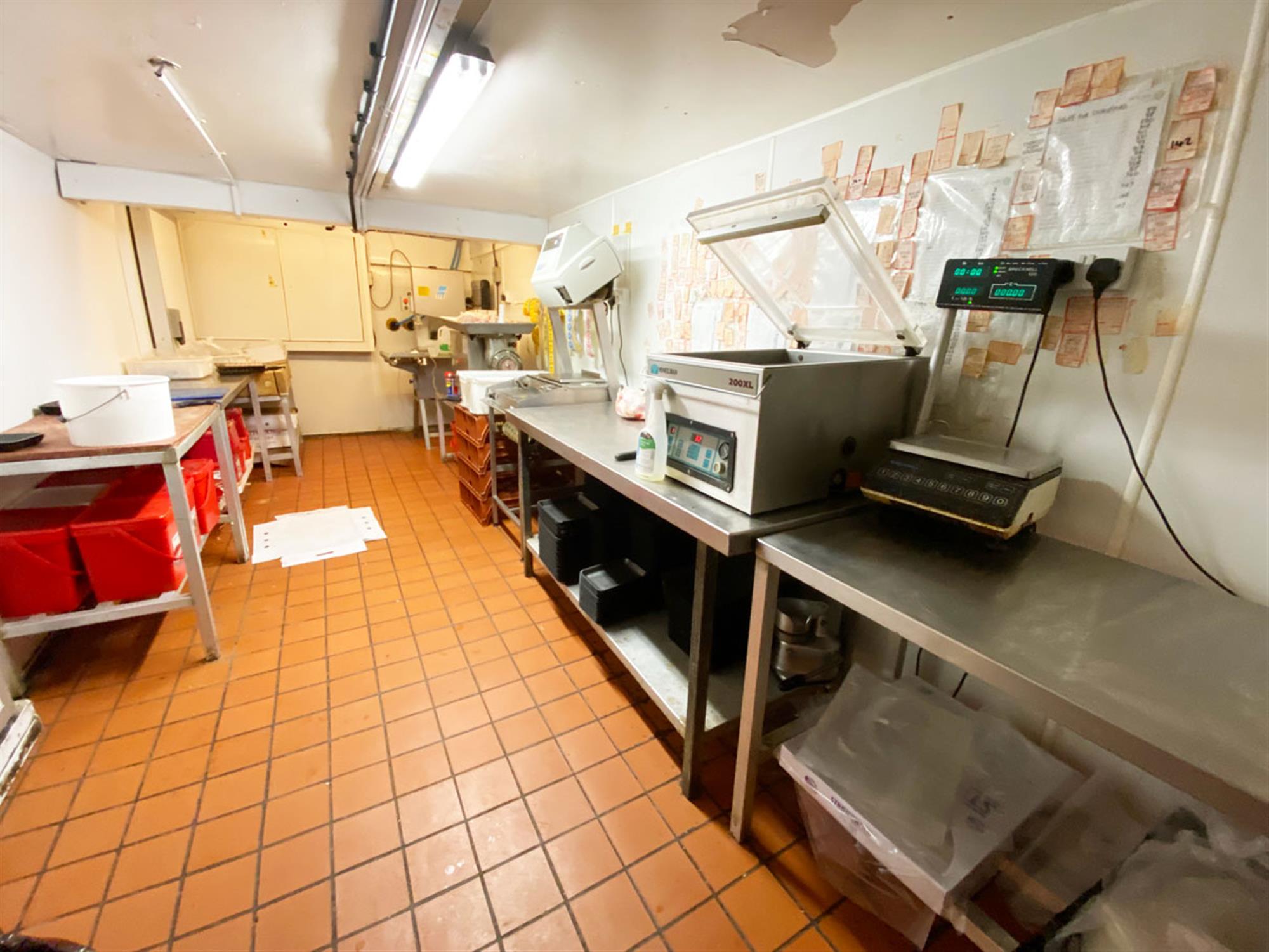 Accommodation The electric shuttered glass fronted premises with retractable canopy comprises of entrance with large open fronted display chiller, ordering area, large ‘L’ deli style display counter, hot food preparation area with hot plate & double convection oven (unused), rear washing up area, 2 staff WC, exit to bin area. Stairs leading down to lower ground floor providing walk in fridge, walk in freezer, large preparation area with band saw, large mincer, 2 heat sealers and vac pak machine.