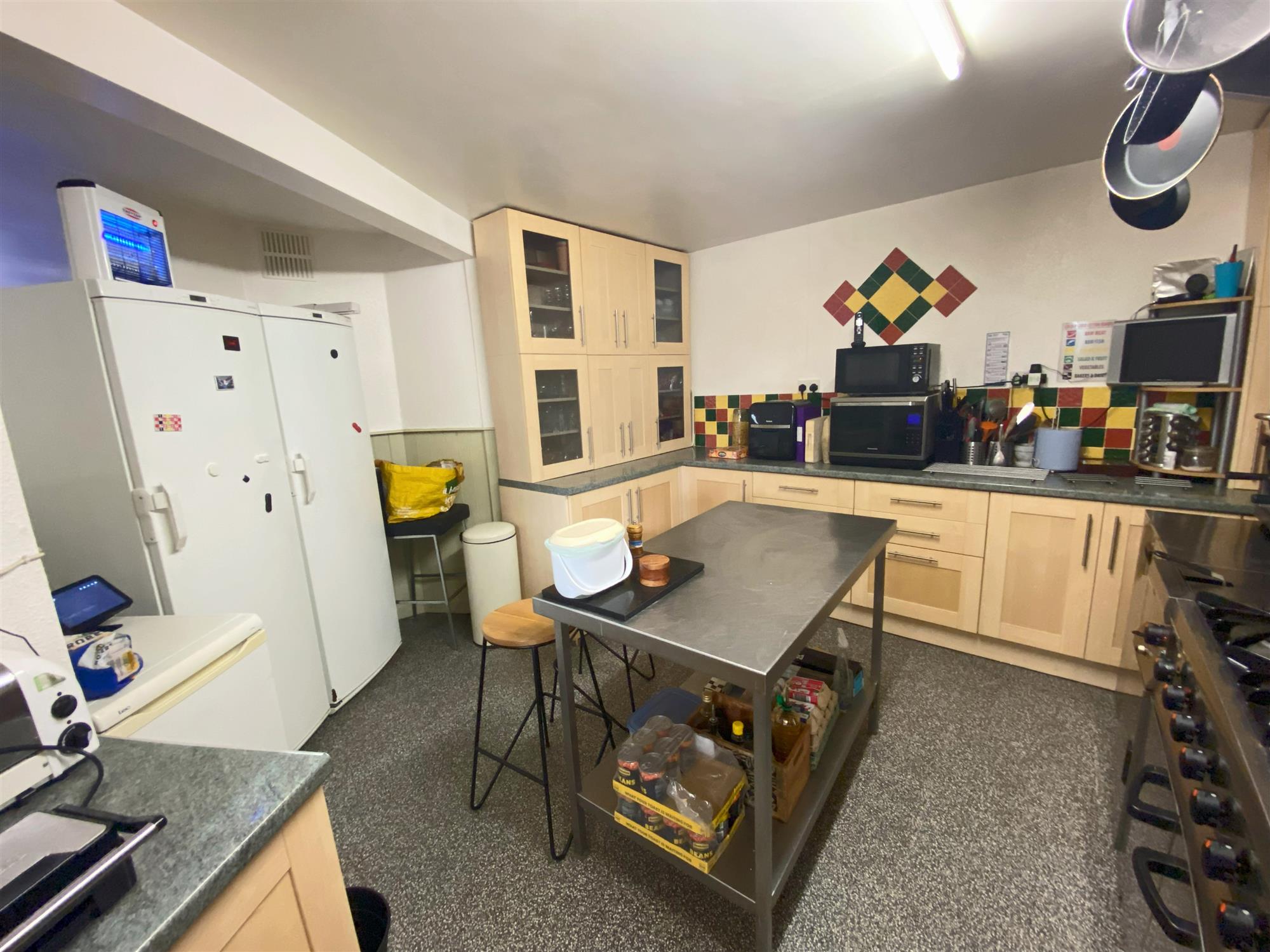 Basement: featuring DOUBLE BEDROOM, BATHROOM with bath, tiled walls and flooring, spacious LOUNGE leading to private GARDEN AREA (which is split level with well maintained borders and SHED), small LOUNGE offset from the main lounge, CATERING KITCHEN with vinyl flooring, central PREP AREA, a good selection of catering equipment and effects, refrigeration units and separate WASH and PREP ROOM.