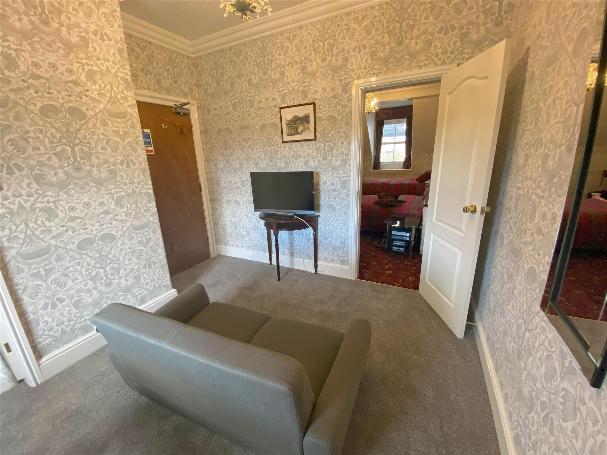 LETTING ROOM 4: FAMILY SUITE with carpeted LOUNGE, BATHROOM offset with shower cubicle, BEDROOM with double and single bed