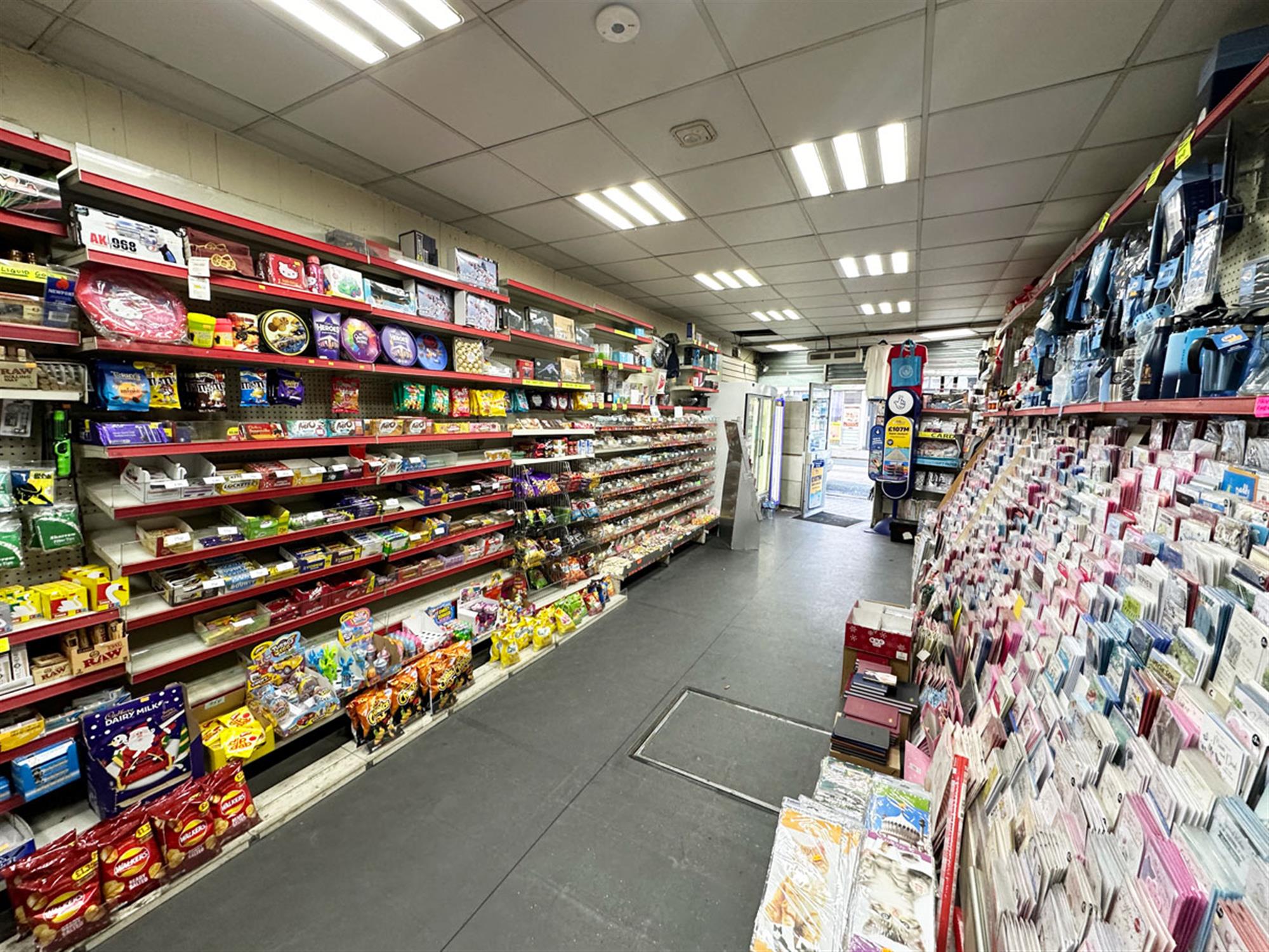 Electric shutter, glass fronted front, central entrance, large shop floor providing magazine and paper display area, large card display area, confectionary display area, service counter, good sized rear storeroom and rear exit. Stairs leading to 1st floor providing W/C, 2 storerooms and 2nd floor providing further storage.