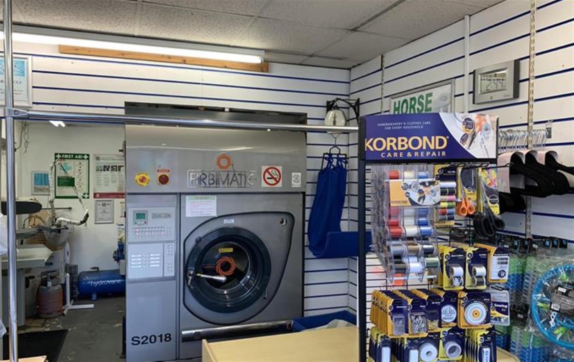 Fitted to high industry specifications throughout, these substantial and well maintained TWO STOREY leasehold semi-detached premises provide outstanding and highly functional internal business accommodation to the GROUND FLOOR, which briefly comprises a broad, inviting and glazed, double-door public entrance directly off Haygate Road into a bright and welcoming client reception area with modern display rails for finished articles and a prominent and fully fitted service counter with telephone, full complement of payment facilities, high quality displays for market- leading sewing supplies, laundry bags and suit bags etc. and a well maintained 50lb capacity “Firbimatic” S2018 commercial dry cleaning machine.