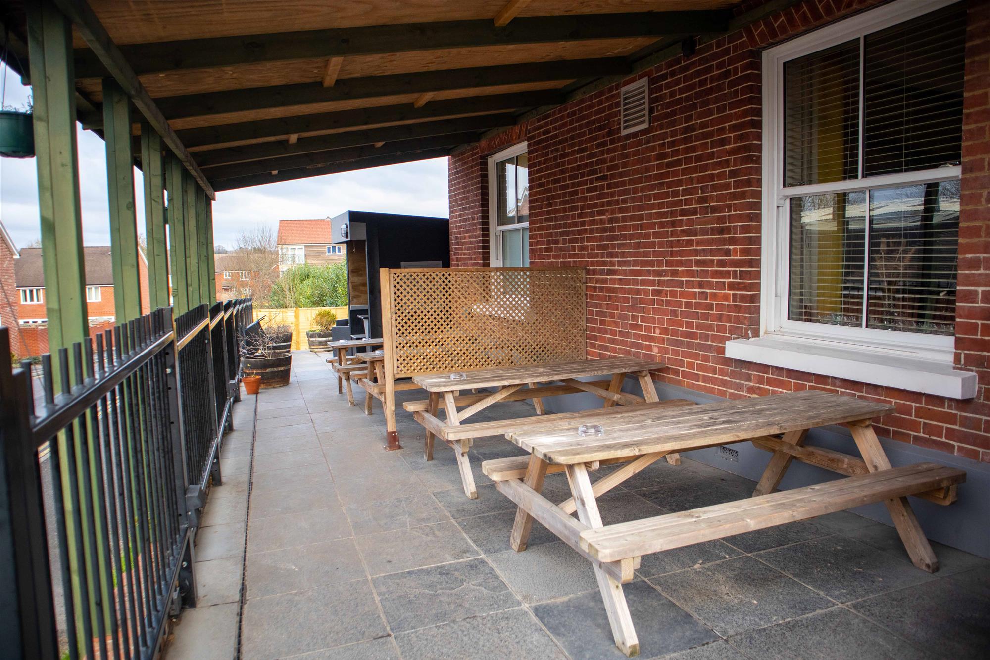 - SIDE PATIO and GARDEN: Part covered, providing seating for 40-50.