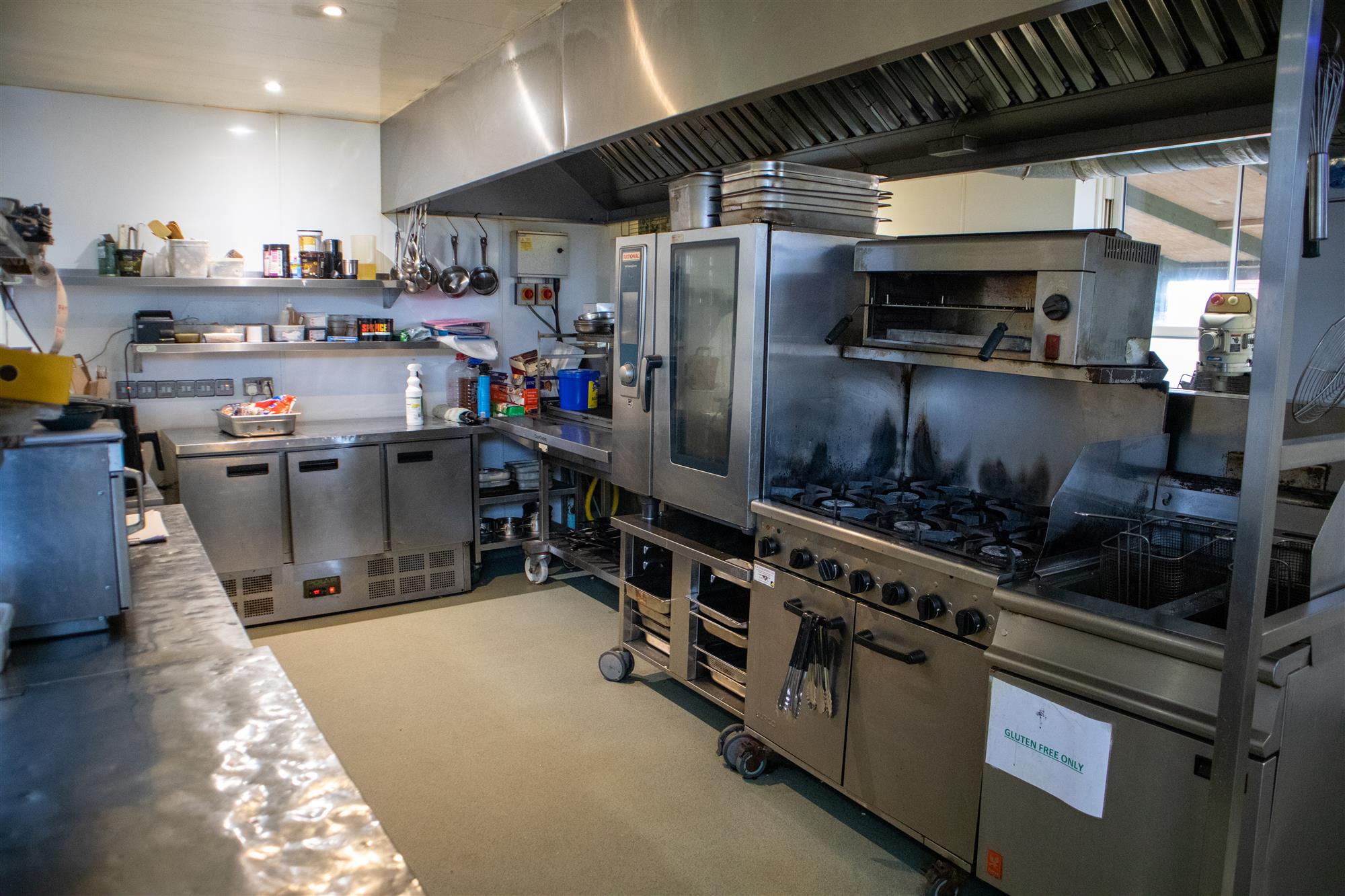 - TRADE KITCHEN: A deceptively spacious area equipped with a range of commercial facilities including double deep fat fryer, six burner range cooker, rational oven, salamander, hot pass and undercounter fridges.