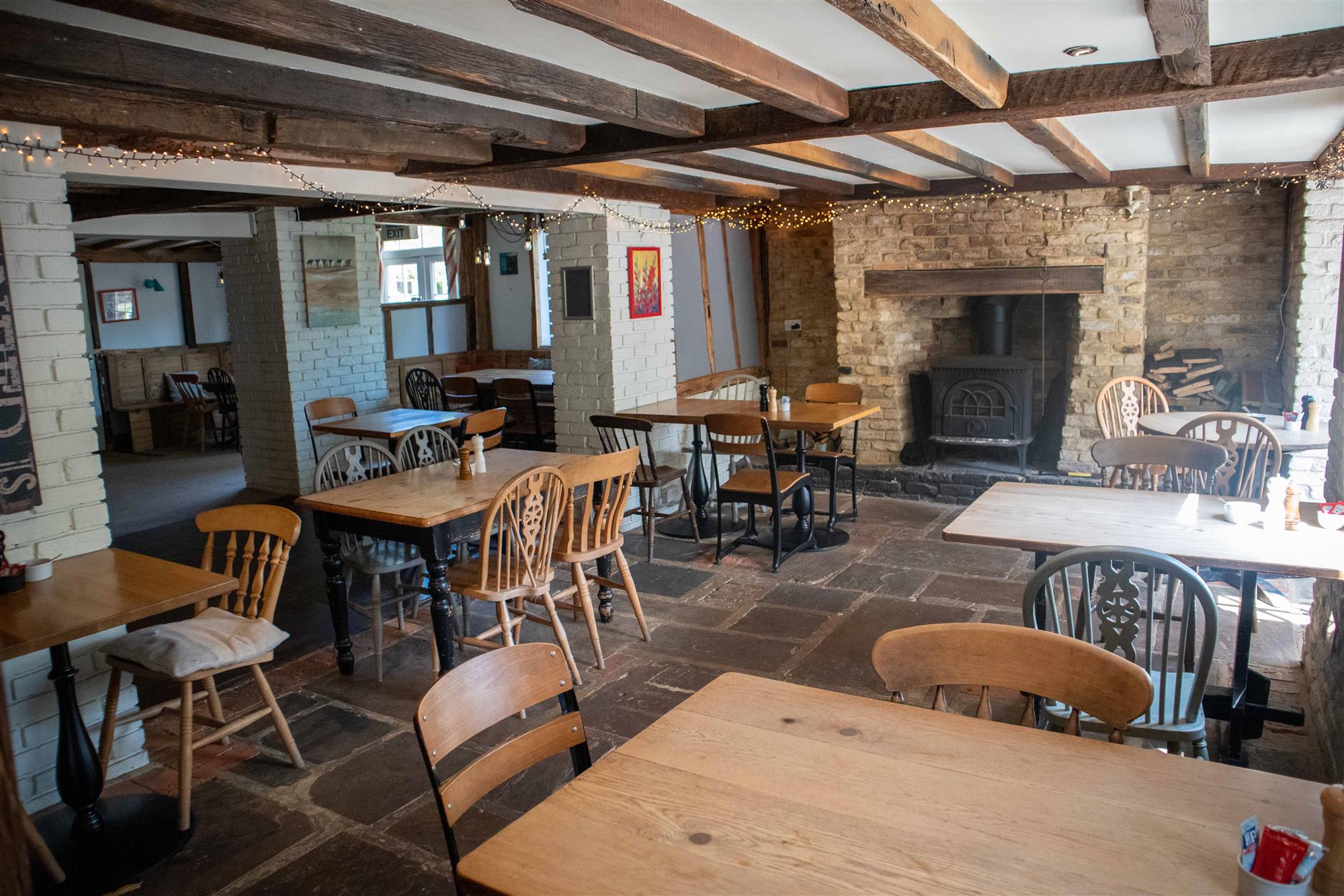 - BAR/RESTAURANT/COFFEE SHOP: An open plan trade area retaining many original features including exposed brickwork, timbers, two log burners and flagstone flooring. Modern bar servery with drinks fridge and coffee machine. Potential to seat 45-55.