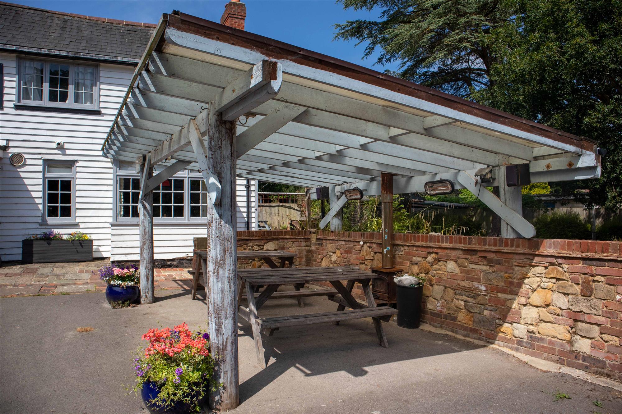 - WALLED TRADE PATIO: With smoking solution and potential to seat 40-50.