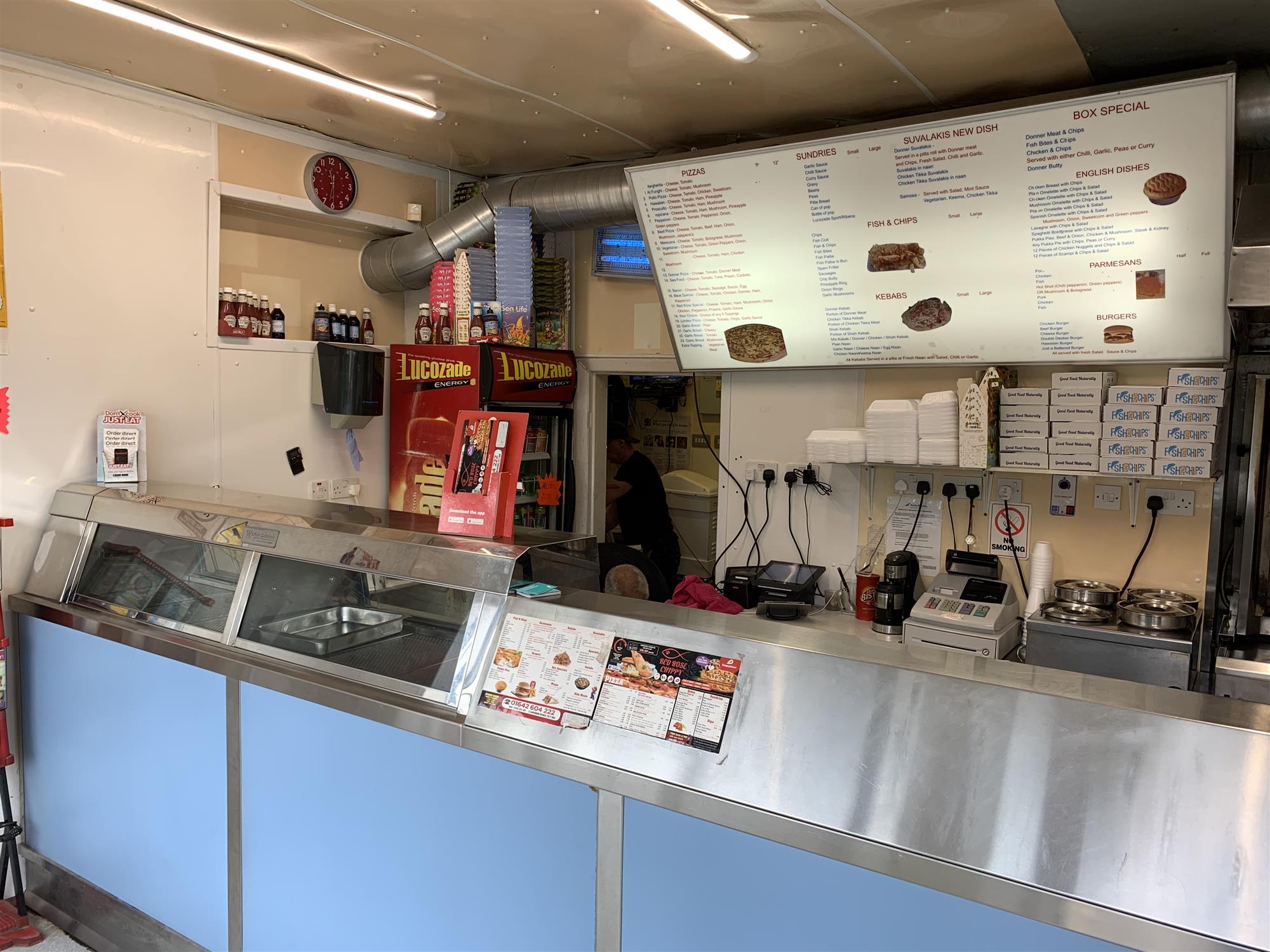 The main public area also features a fully fitted, full-length food serve-over counter with well maintained, built-in stainless-steel frying range with hot top boxes, a large, glass-fronted and refrigerated soft drinks display unit, electronic till point, online ordering system and easy open access to a fully fitted and extensively equipped open “theatre style” commercial food preparation area with extraction system,
