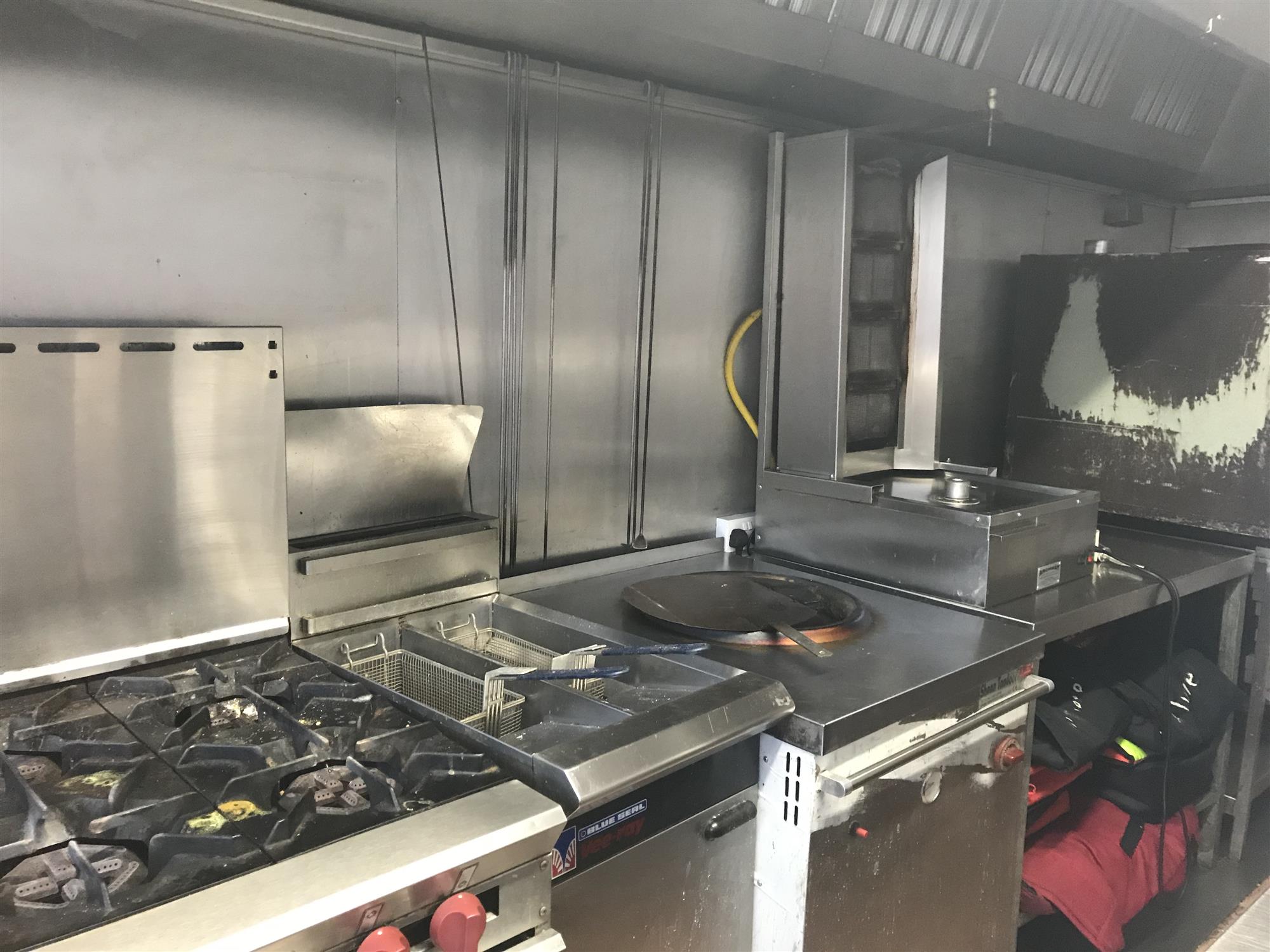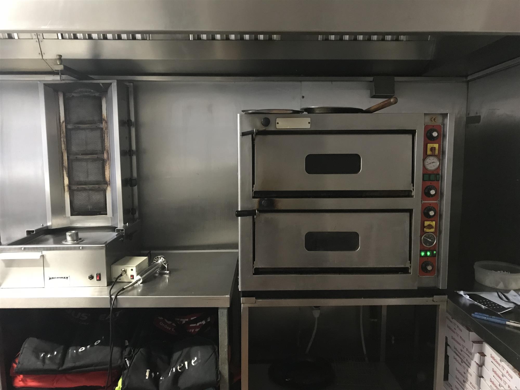 The main kitchen area houses a further range of well maintained, stainless-steel catering appliances including a 2-deck commercial pizza oven with pizza topping preparation counter, kebab burner, tandoori oven, double deep-fat fryer, 4-burner oven and hob, burger griddle and various refrigerator/freezer storage units, etc., all of which we understand is to be included in the sale price and further details of which will be available upon request to any genuine interested parties.