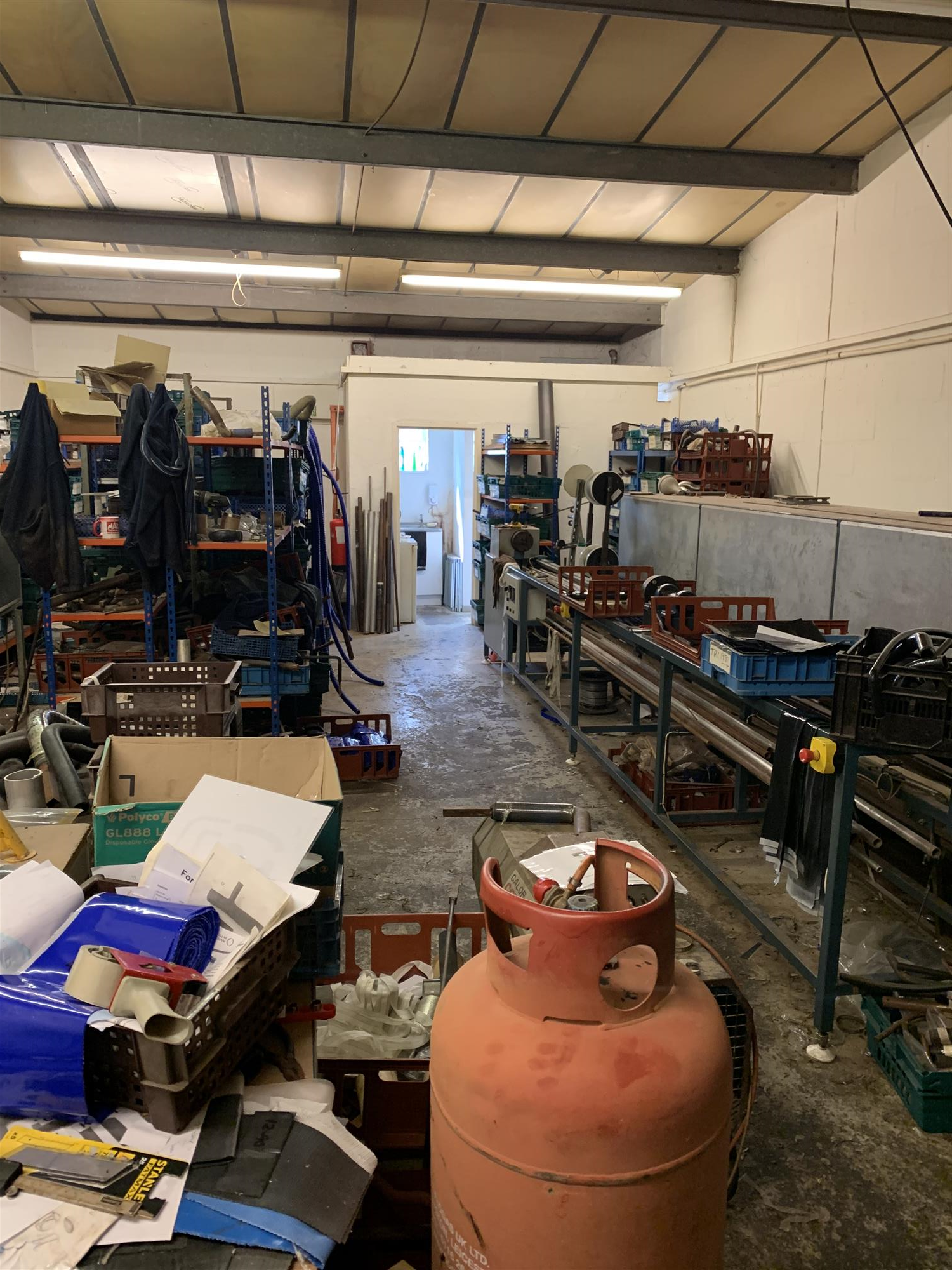Affording easy access for deliveries and despatches by means of large, full-height steel industrial roller shutter doors, these substantial and well fitted, single-storey leasehold commercial premises provide excellent and highly functional internal business accommodation, which briefly comprises the main, large and open-plan general workshop with concrete flooring, high ceiling, diffused fluorescent strip lighting throughout, extensive tool and materials storage racking and various workbench areas.