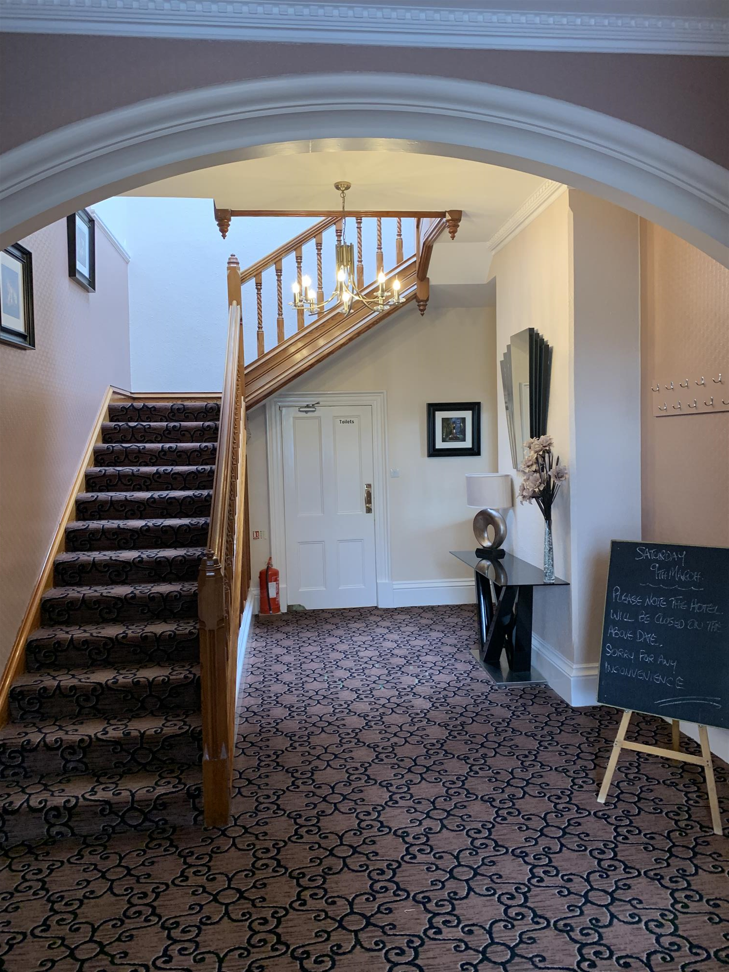 Fitted to high industry specifications throughout, these charming, substantial and impressive TWO STOREY stone-built landmark character premises provide truly outstanding and highly functional internal business accommodation with Wi-Fi internet access throughout and which, to the GROUND FLOOR, briefly comprises an inviting public porchway vestibule entrance into a spacious and welcoming hotel reception foyer area with well maintained fitted carpets, a fully fitted service desk and feature open dog-leg staircase access to first-floor level.