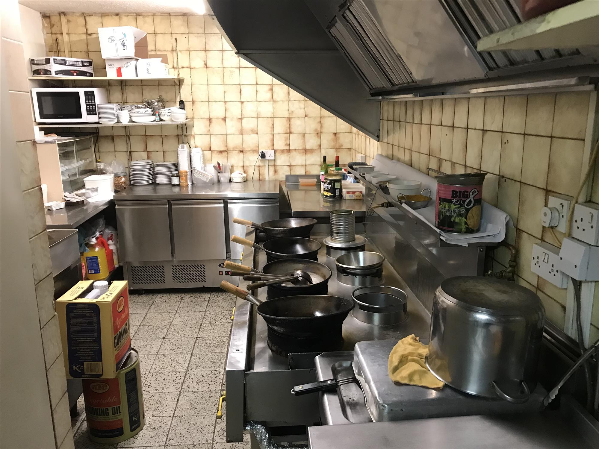 The main kitchen houses ample stainless-steel work surfaces, storage units, a fully equipped preparation/washing-up kitchen area, a large ‘walk in’ refrigerator store and a full range of well maintained, industry standard stainless-steel catering appliances including a large water-cooled Oriental wok range and various refrigerator/freezer storage units etc., all of which we understand is to be included in the sale price and further details of which will be available upon request to any genuine interested parties.