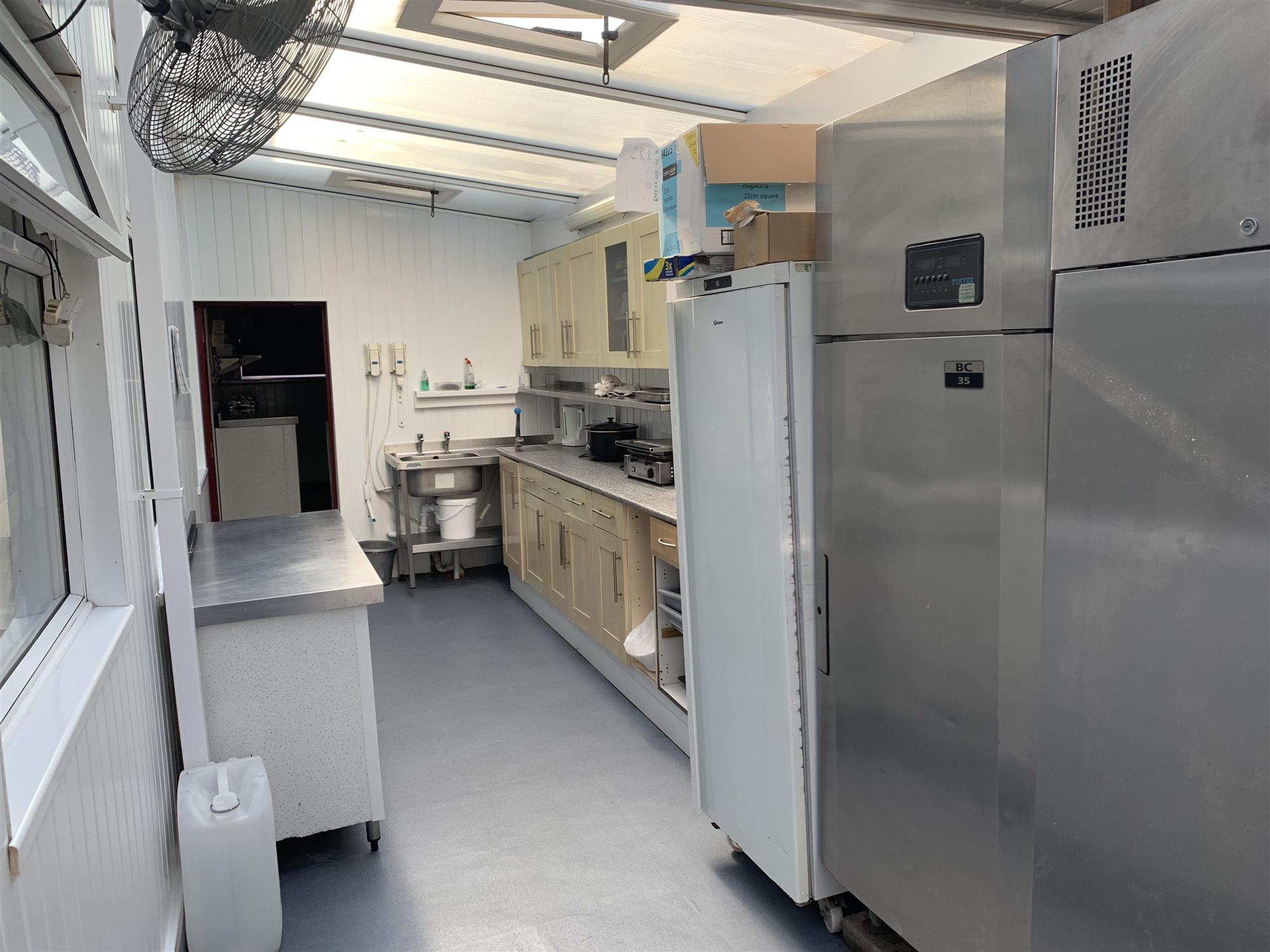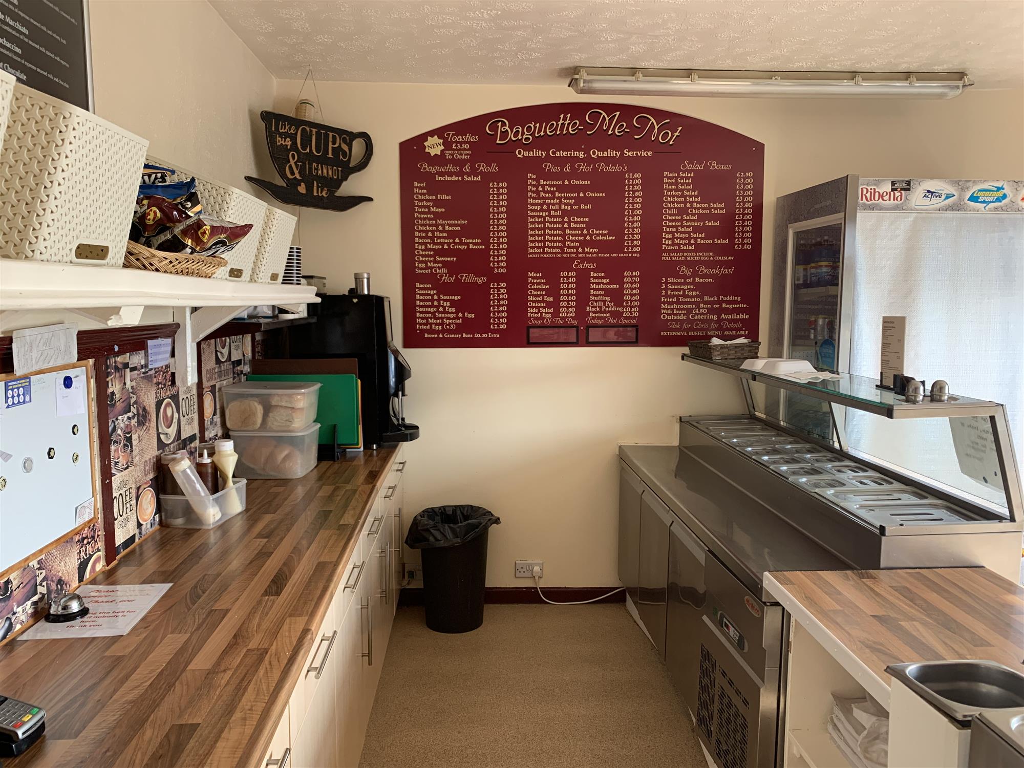 The main public area also features a fully fitted food serve over counter with a large, stainless steel and glazed storage and display unit for baguette and sandwich fillings, electronic till/food ordering point, a glazed and heated pie and snackfood display unit and an open preparation area with built-in storage units, hot drinks dispensing machine and access through to the main, fully fitted and extensively equipped commercial kitchen with extraction system, industrial non-slip flooring and part stainless-steel clad walls for easy cleaning.