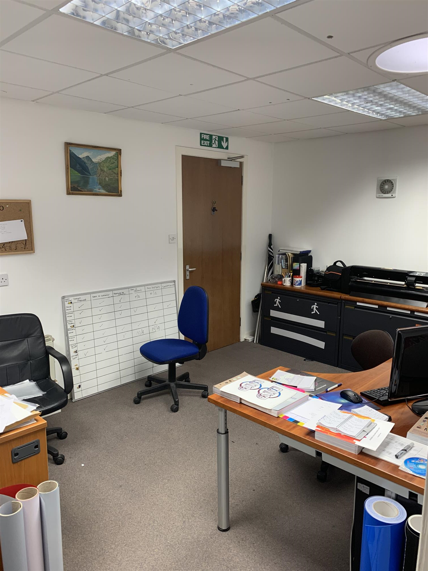 Accessed directly from the workshop area, or by means of its own glazed, double-door public entrance with disabled access, the premises also incorporate a bright and welcoming client reception and service area with access to a suite of 4 x fully furnished and computerised general administration and private directors’ office areas with full complement of individual work desk stations, telephone lines, internet links and industry-specific business management systems.
