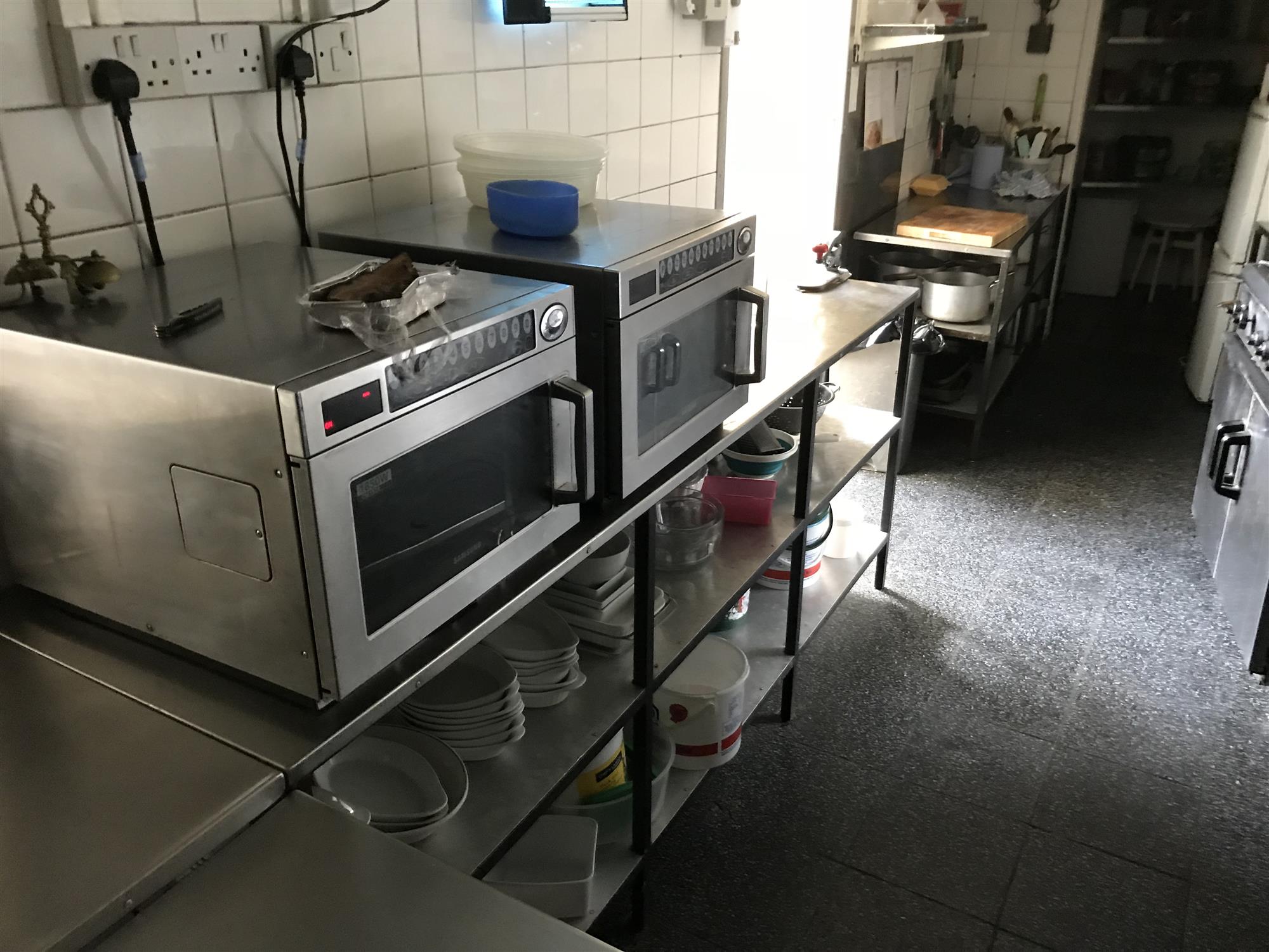 The dining areas are served by a fully fitted and extensively equipped commercial kitchen with extraction system, tiled flooring and stainless-steel clad walls for easy cleaning, housing ample stainless-steel work surfaces, storage units, and a full range of well maintained, industry standard stainless-steel catering appliances including 6-burner range with double oven, deep-fat fryer, griddle and various microwave refrigerator and freezer storage units etc., all of which we understand is to be included in the sale price and further details of which will be made available upon request to any genuine interested parties.