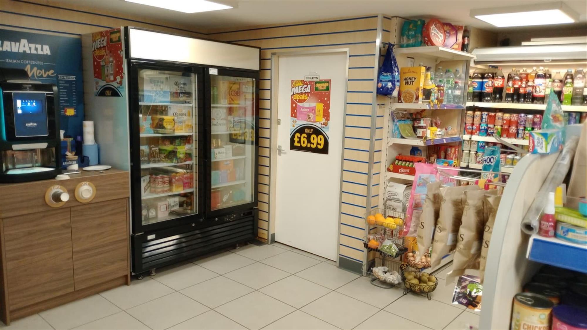 The main customer service area houses a full range of high quality, fixed and freestanding, purpose-built display racking, shelving and furniture, in addition to separate a double refrigerated drinks display unit, a dedicated off-licence section and a prominent fully fitted point-of-sale counter area with spirits, confectionery and sundry displays, tobacco gantry, coffee station for self serve on the go hot beverages and electronic till point