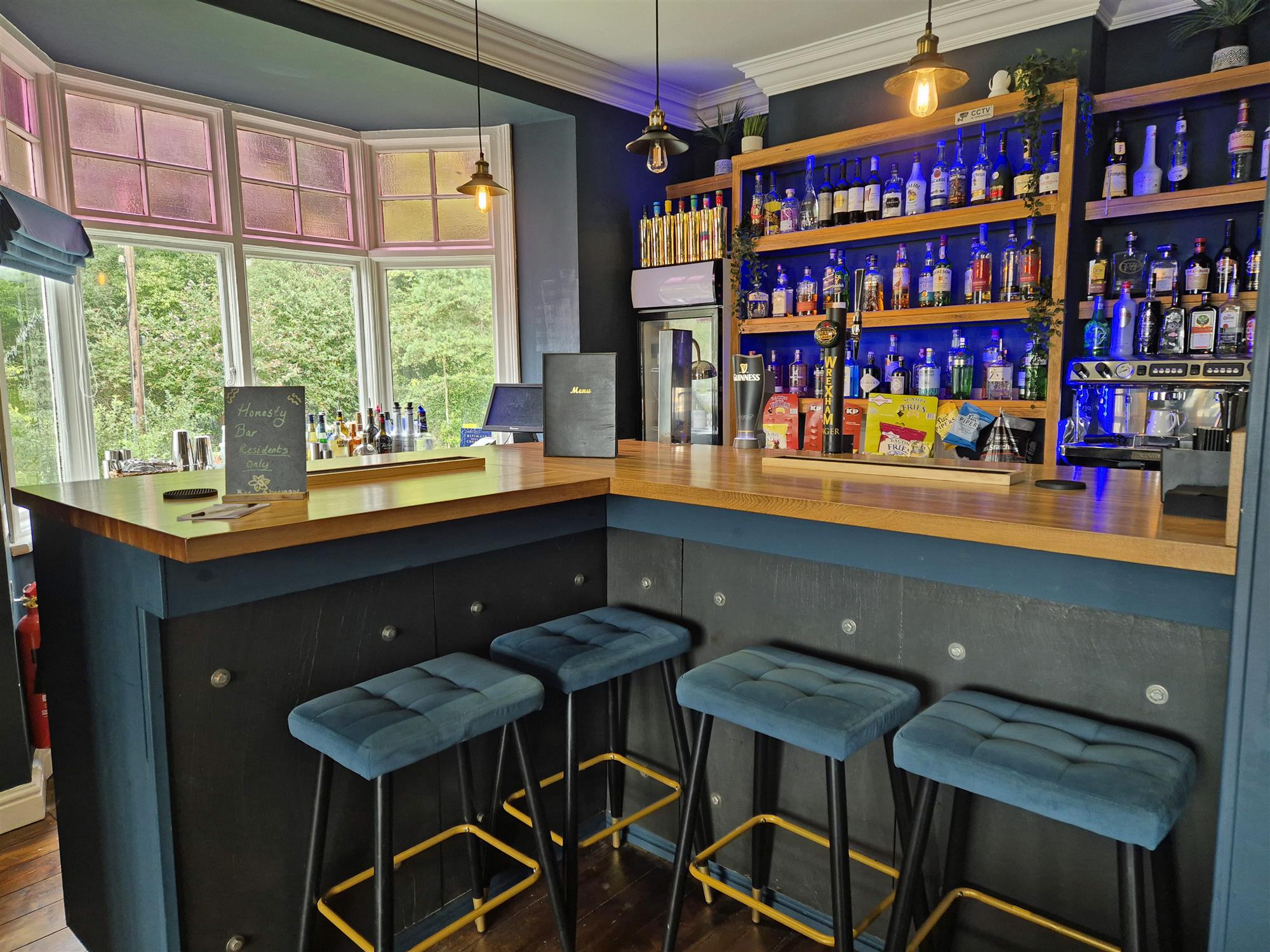 BAR/LOUNGE with stripped wood flooring, loose and sofa seating to accommodate approximately 50 guests, two feature fireplaces and an L – shaped bar servery with well equipped back bar. It is apparent that the room has been subject to much investment and it offers stunning sea views.