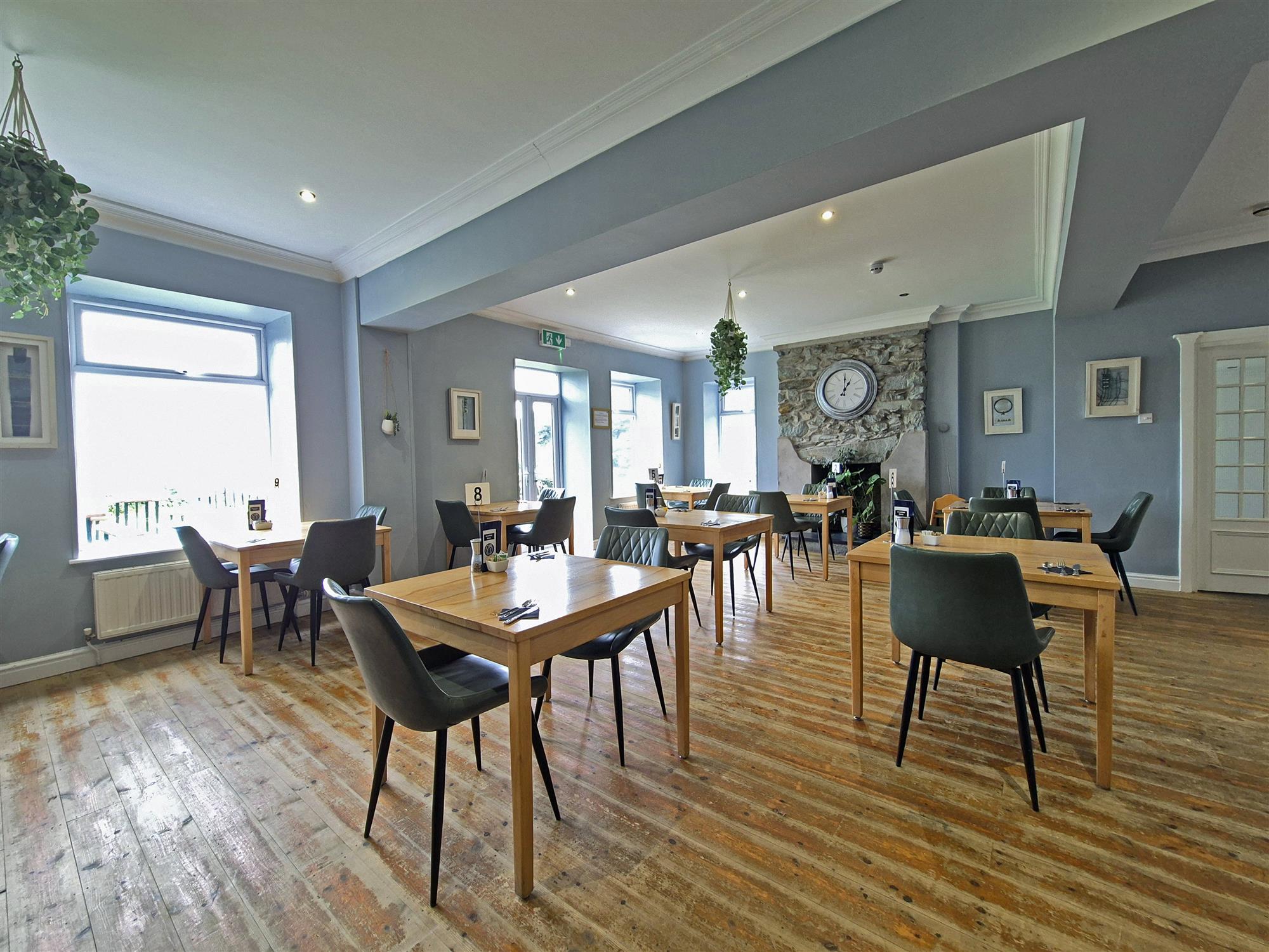 Main entrance leading to RECEPTION/FOYER area with reception desk and MANAGER’S OFFICE. Off to the right is a BREAKFAST ROOM which has stripped wood flooring, two feature fireplaces and French doors leading onto a TRADE GARDEN. The garden offers seating for 44. The trade areas are decorated to a very high standard.