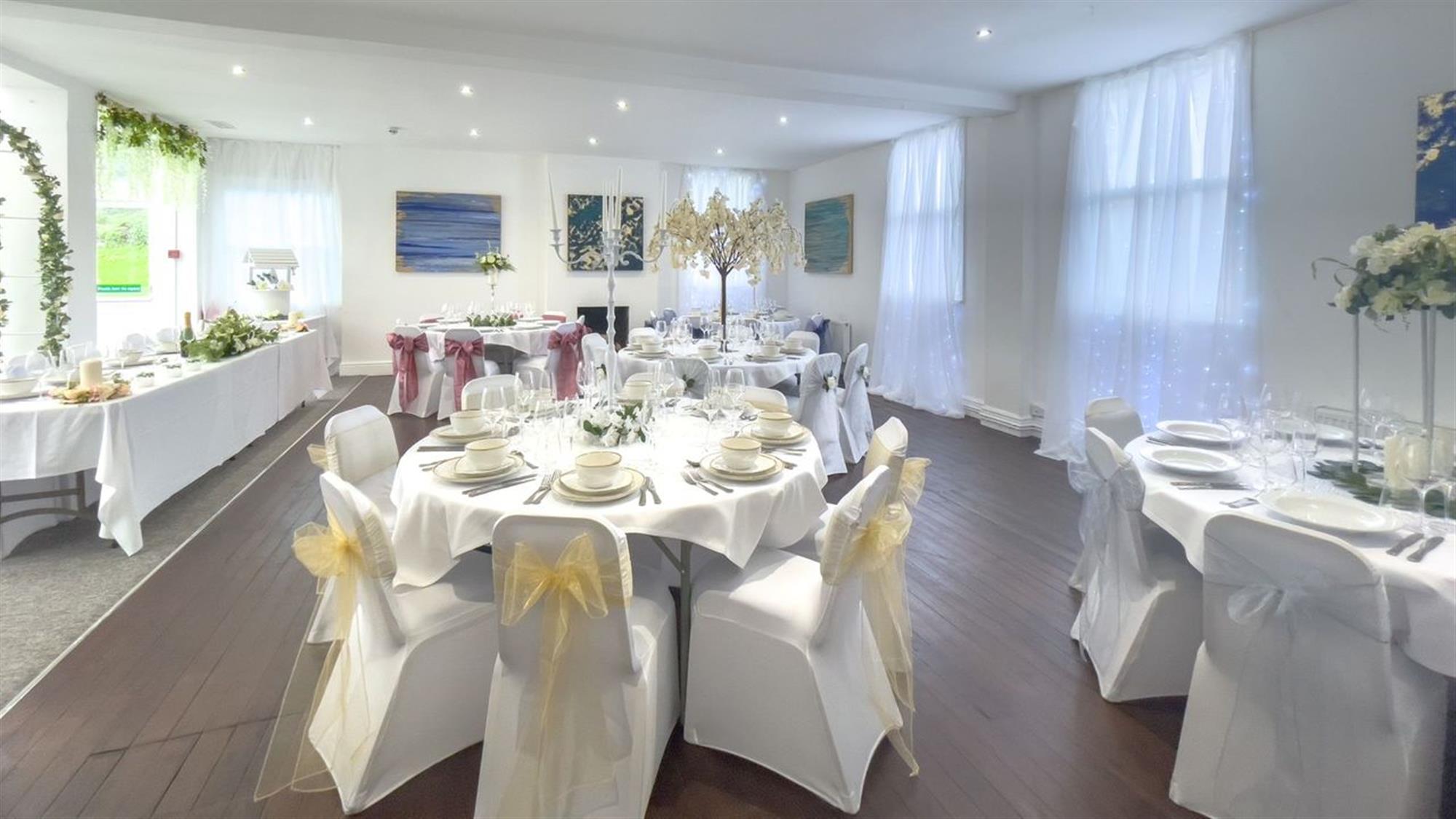 FUNCTION ROOM with a capacity of 86, comprising wood and carpet flooring, wood constructed bar servery and doorway onto rear trade garden.