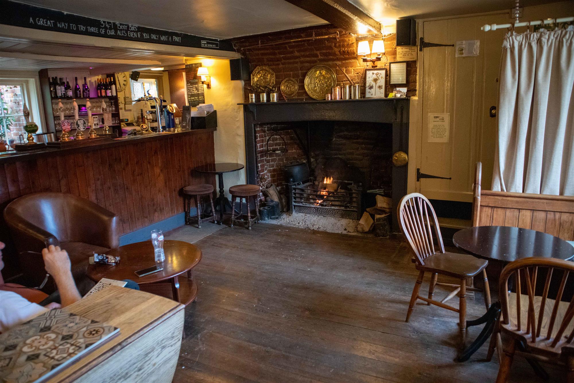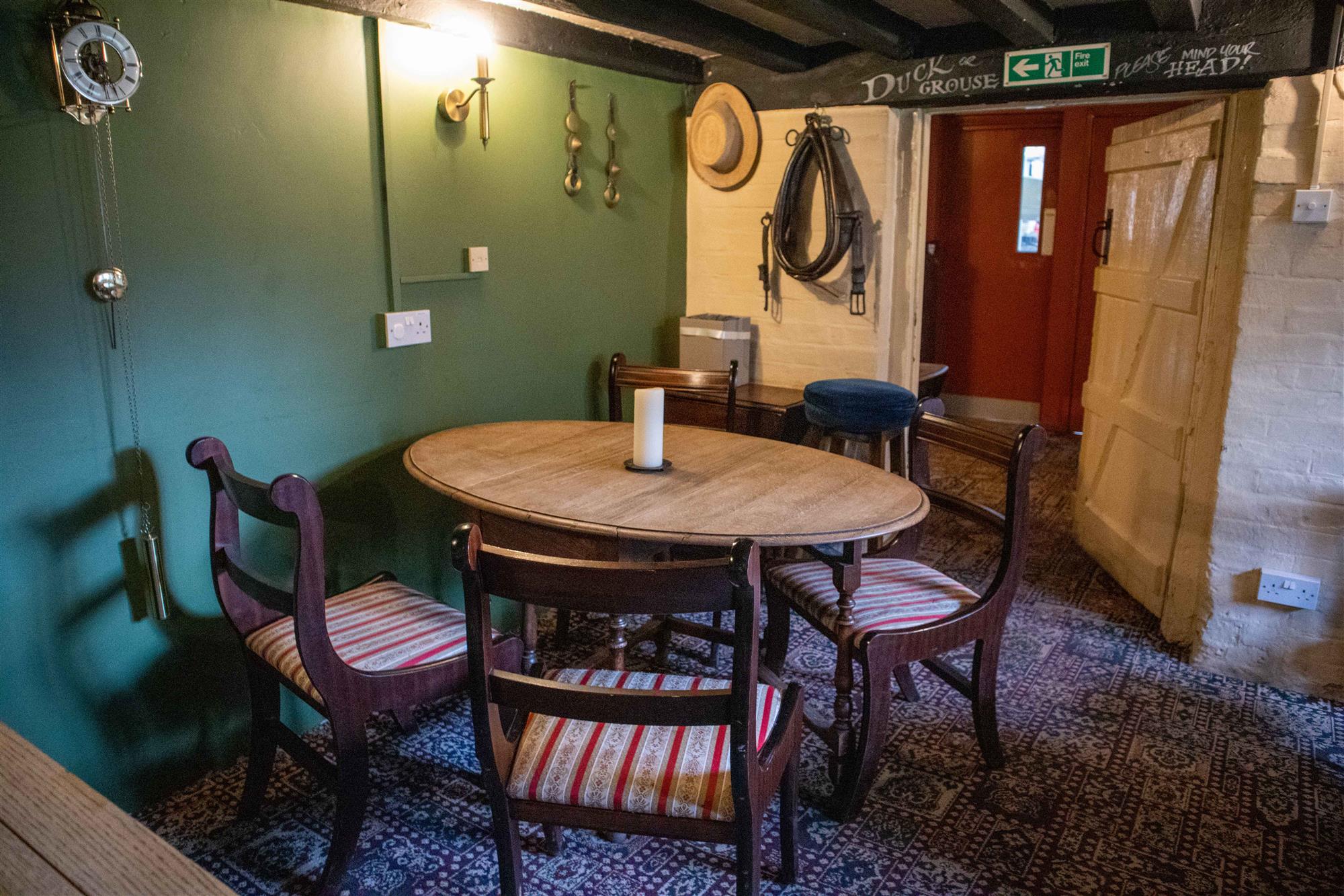Also accessed from the front of the building is a SNUG AREA (known as the Hanger Bar) with brick built fireplace, exposed timbers and seating for up to 25. This area is often used for private dining. LADIES TOILET offset.