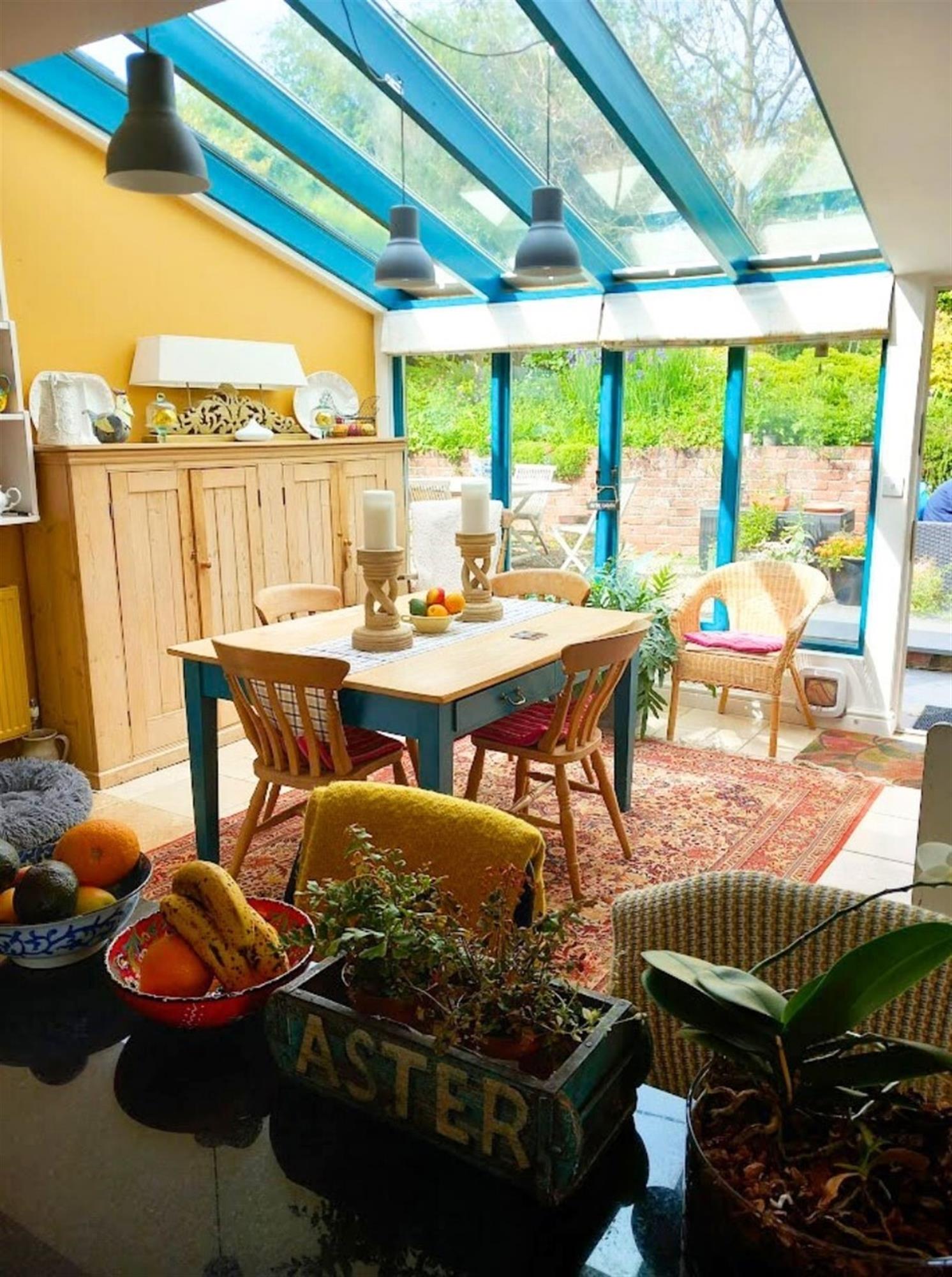 Open plan KITCHEN/DINER with partially glazed roof, tiled floor, farmhouse style fitted kitchen units and dining table for six. UTILITY. Private LOUNGE having heavily beamed ceilings, carpeted floor and outstanding inglenook fireplace with Godwin tiled hearth.