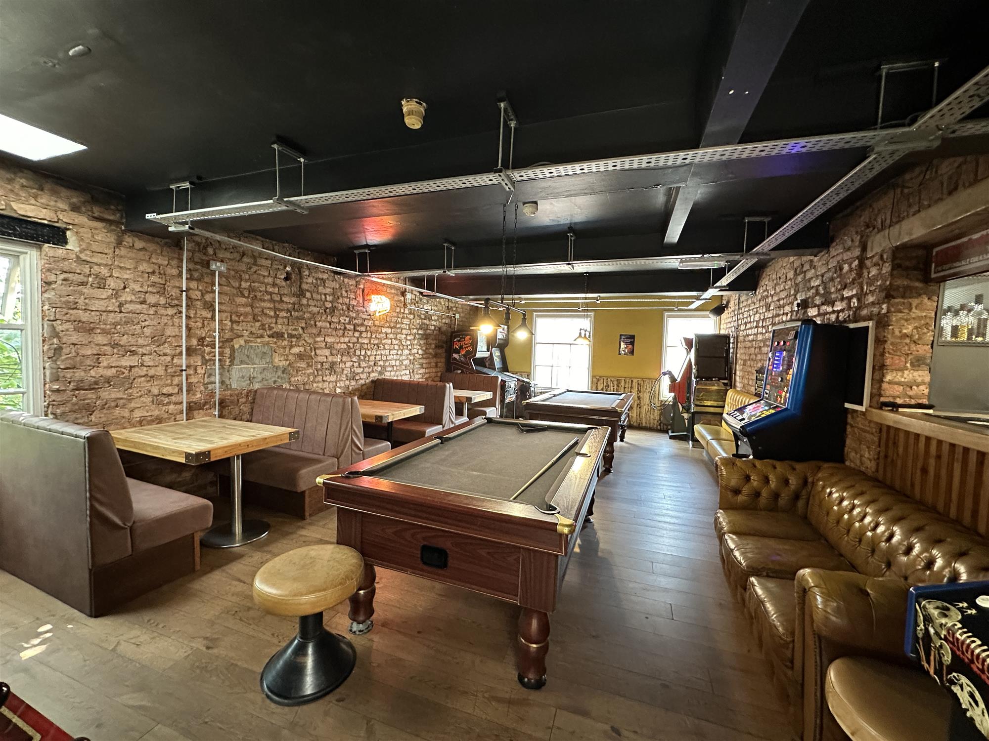 The 2nd entrance providing stage, large bar with seating for 50, W/C, staircase leading to 1st floor (with view of ground floor stage) providing seating area for 70, 2 electric darts area, large bar with seating for 30, small store cupboard, small kitchen with hot plates, double deck pizza oven, frying area, cold storage, W/C large games room with 2 pool tables, arcade machine, seating for 30. Further stairs to 2nd floor providing WC and large office.
