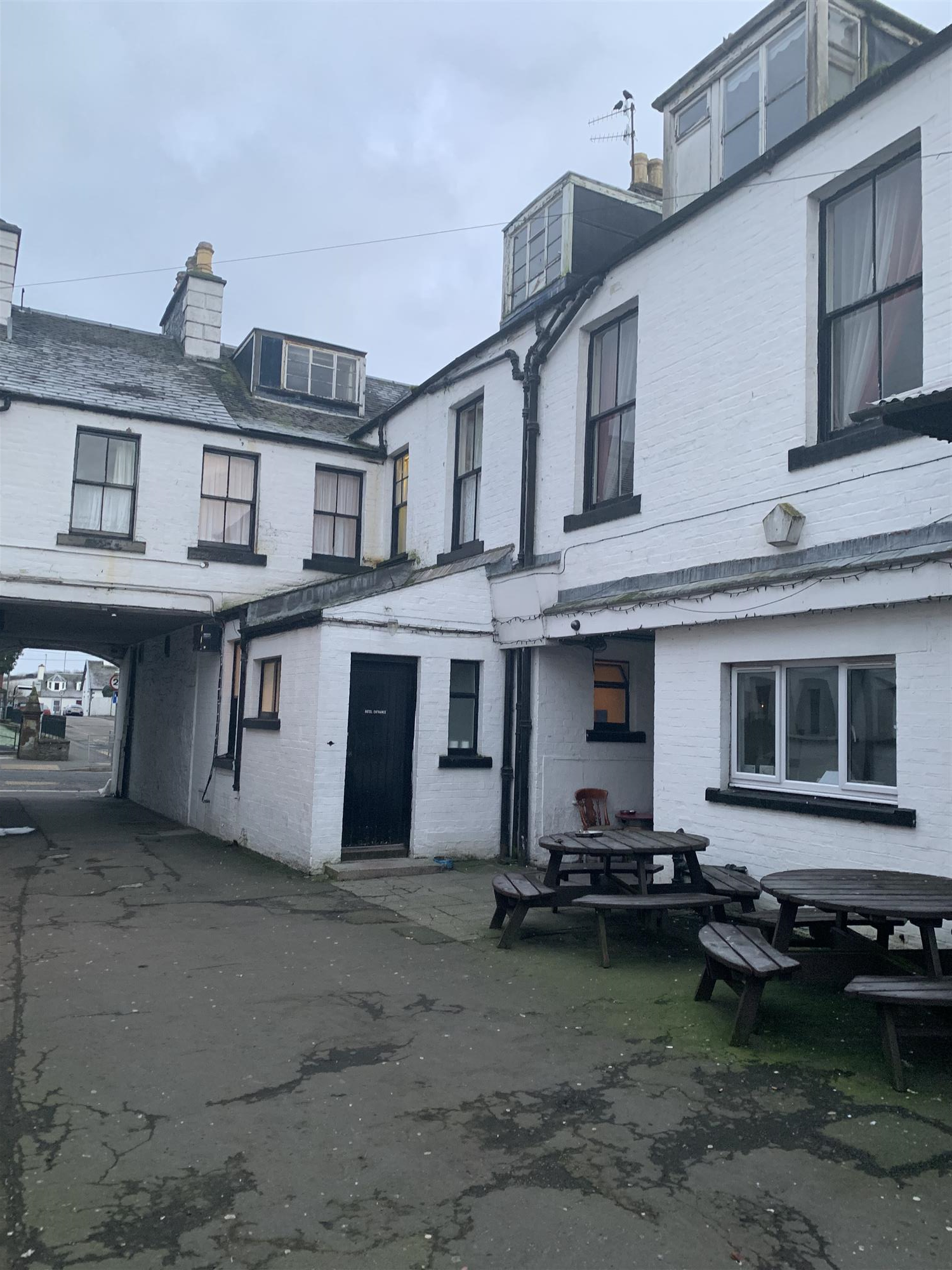 Occupying an outstanding trading position on a high footfall year-round tourist market town centre commercial thoroughfare, to the front the premises are well signed and attractively presented with an impressive listed façade and afford feature central archway vehicle access with lockable double security doors directly off King Street to a large and well maintained central courtyard employed as a public beer garden and smoking area with picnic-style bench and tables.