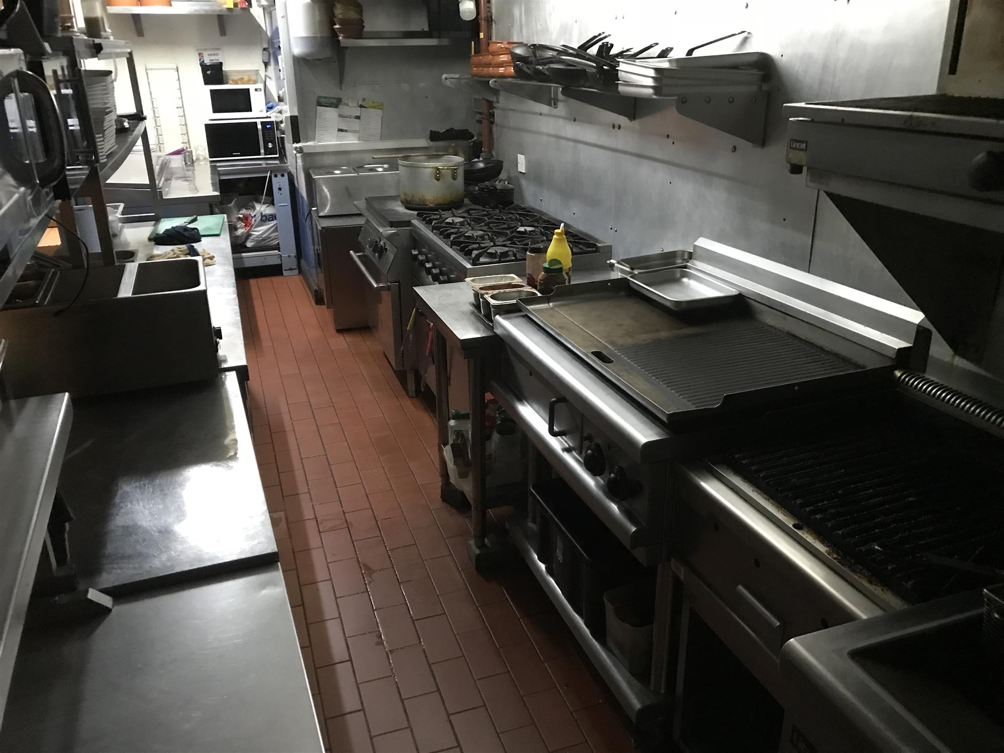 The main kitchen area houses ample stainless-steel work surfaces, storage units, a fully equipped preparation/washing up kitchen area with 2 x fitted sink units and dishwasher and a full range of modern and well maintained, industry standard stainless-steel catering appliances including 6 burner oven and hob, hotplate, eye-level “Salamander” grill, charcoal griddle, 2 x double deep-fat fryers and various commercial microwave and refrigerator storage units etc., all of which we understand is to be included in the sale price and further details of which will be made available upon request to any genuine interested parties.
