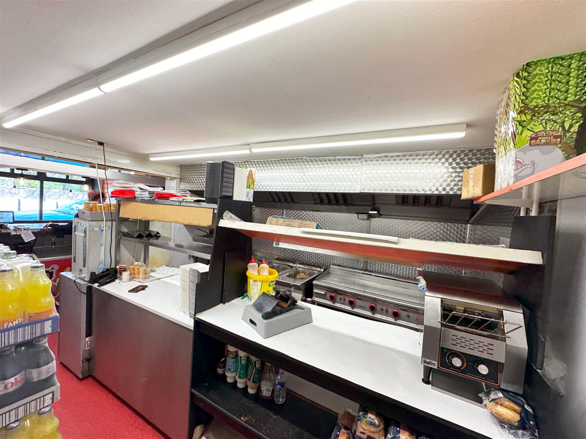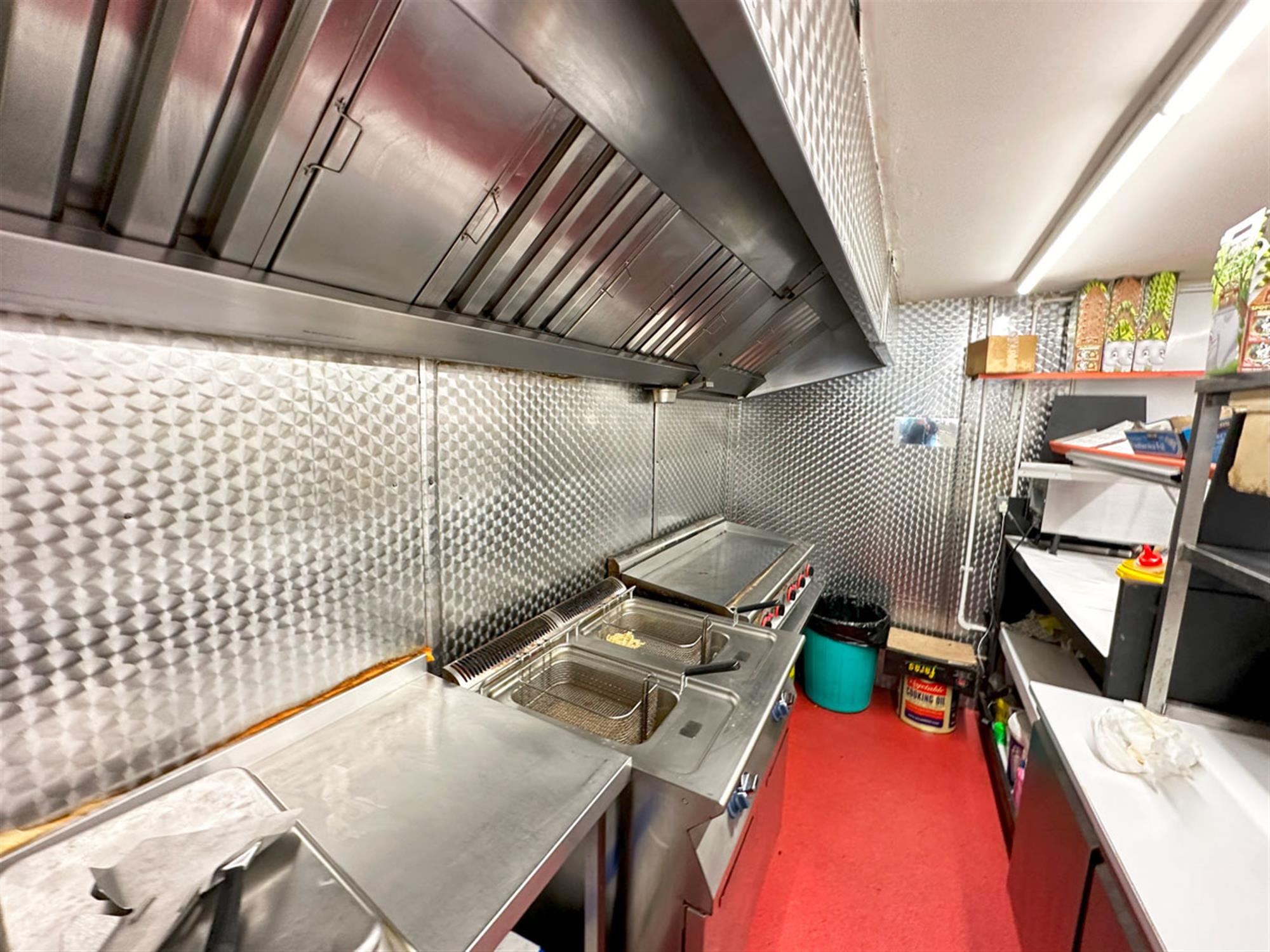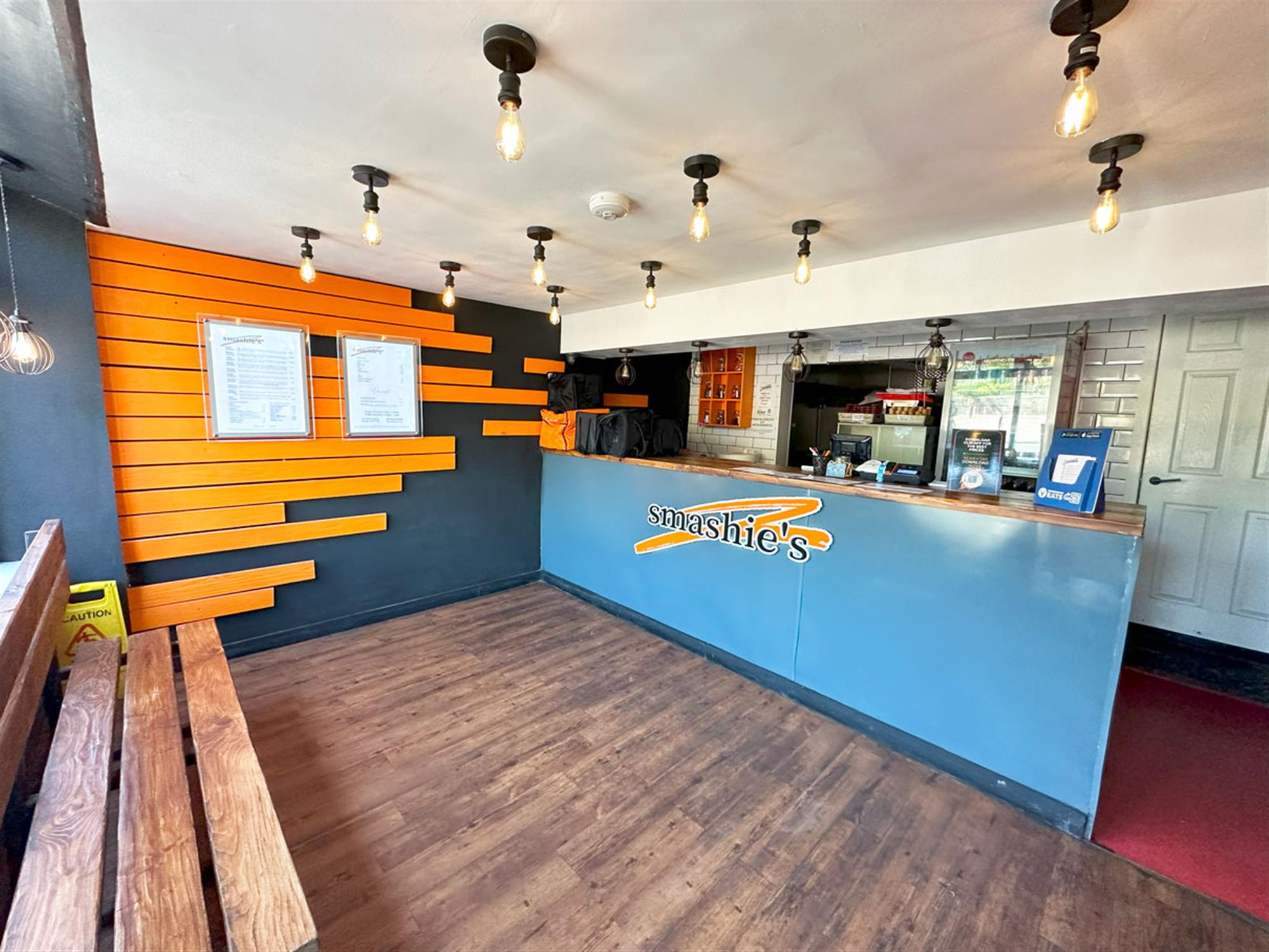 The property comprises of an ordering area, service counter, open plan kitchen, rear washing up room, exit to bin area. Stairs from service area leading to 1st floor providing W/C and 2 storerooms.