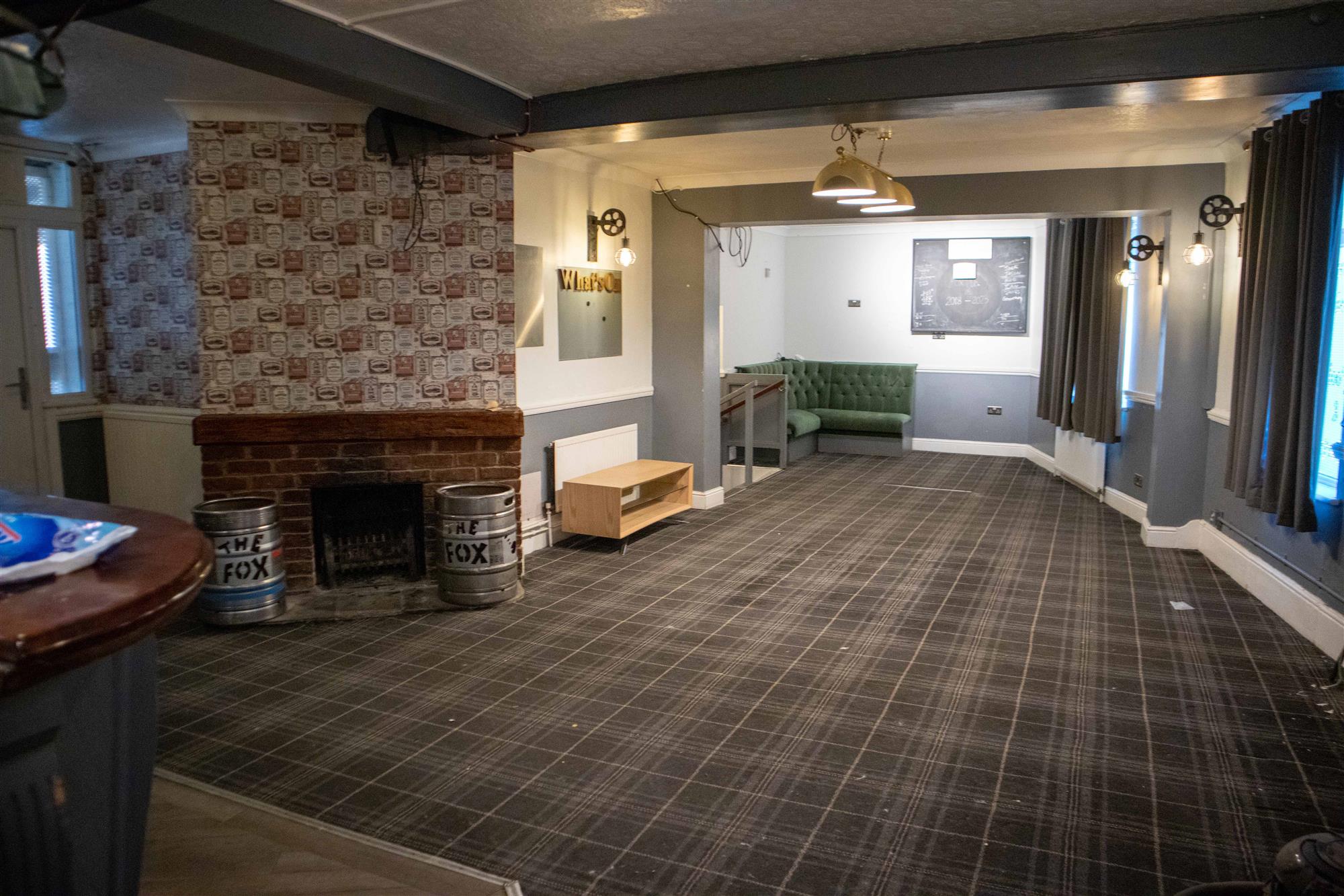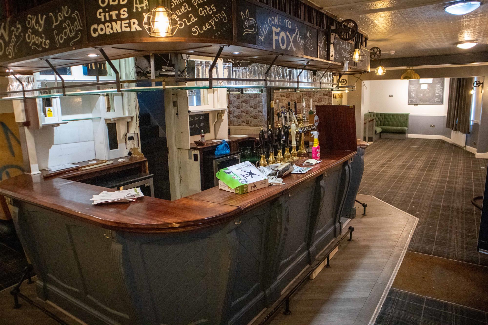 The Fox is an end-of-terrace public house of stone construction under a pitched tiled roof, comprising: