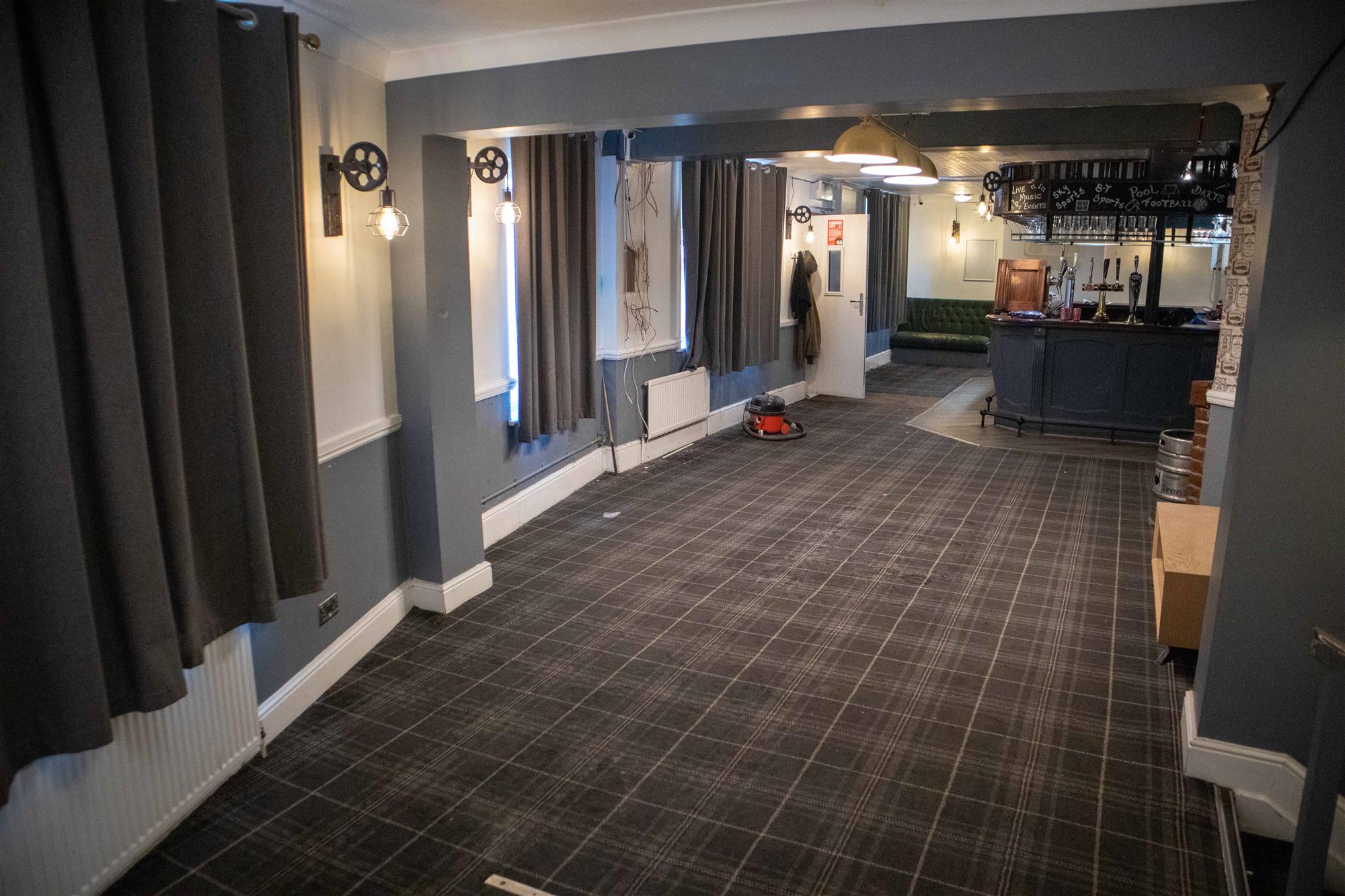 - BAR: Open plan trade area with carpeted flooring and a central wood built bar servery. Potential to seat 30-40.