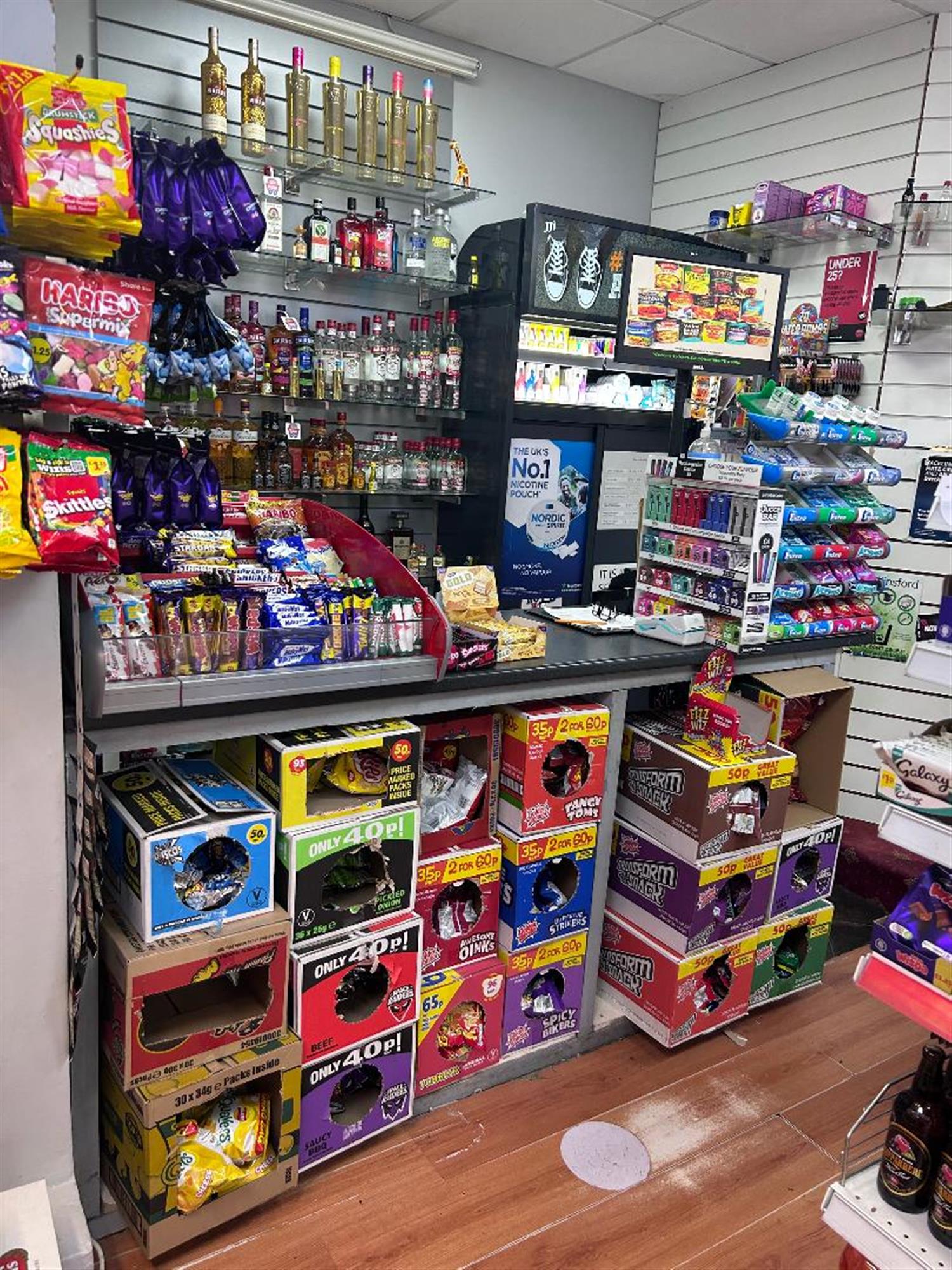 - Off Licence, Toiletries/Cosmetics, General Store, Tobacconist, Convenience Store, Newsagents, Counte