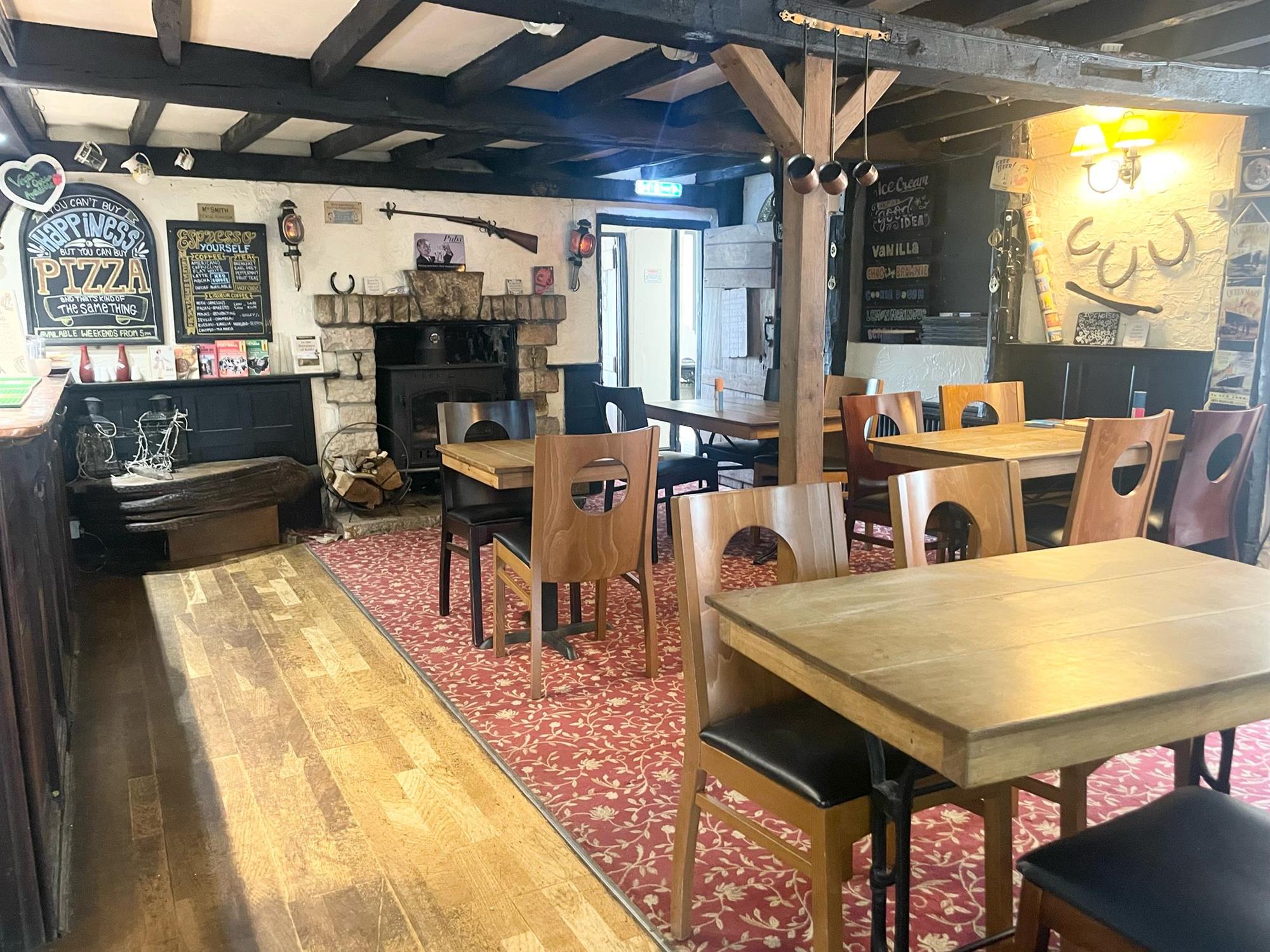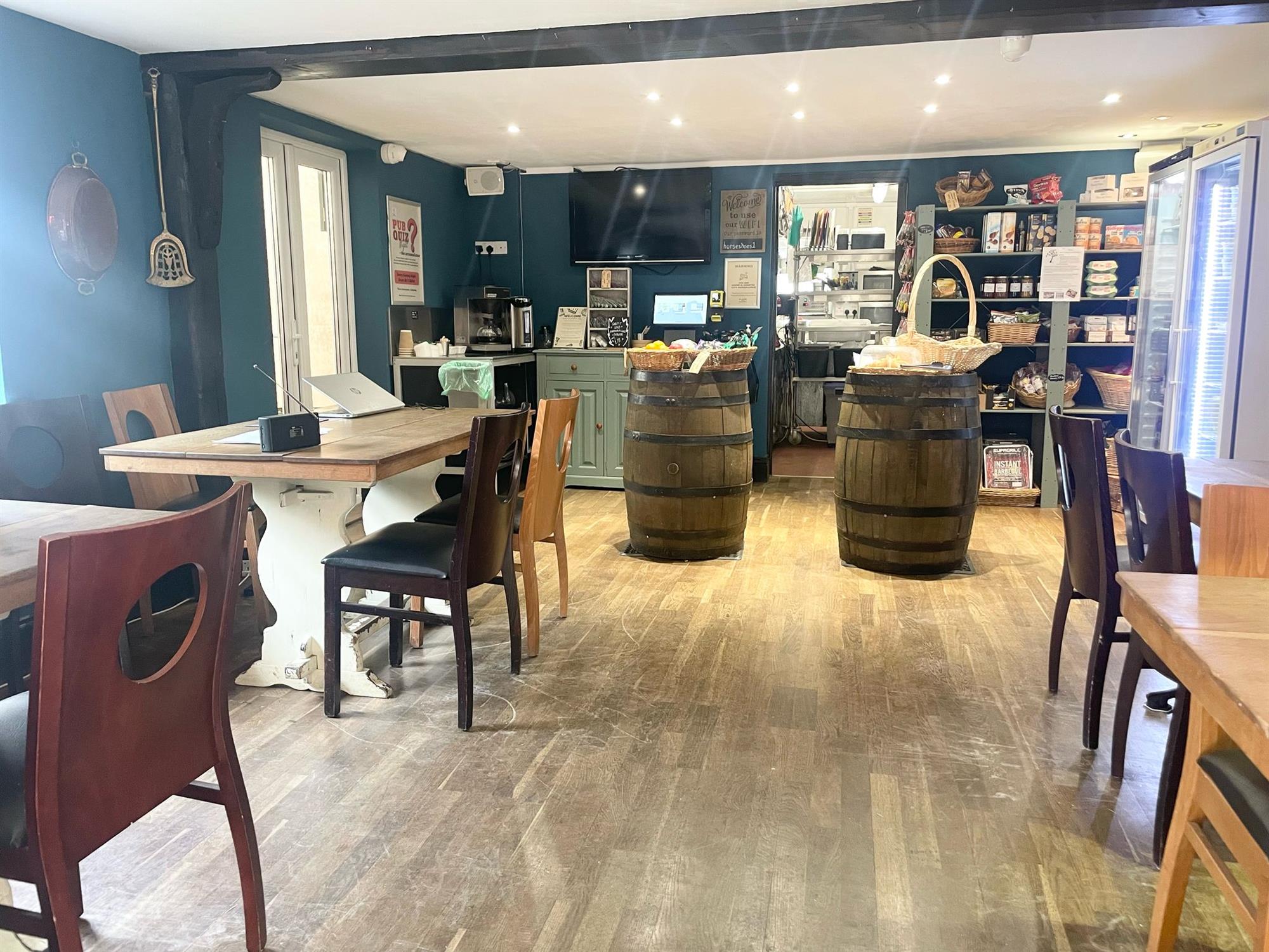 Entrance from Shoe Lane directly into the main entrance hall which has access to Ladies’ and Gentlemen's TOILETS and houses a storage cupboard. FRONT BAR/GAMES ROOM which has seating for 36, a multi-fuel burner, part carpet, part vinyl flooring, feature ceiling beams, space for a pool table and an extension of the main bar servery. From the front bar is the entrance to a storage room and access to a private yard. The front bar also provides access to the MAIN BAR which has seating for 26, main bar servery, carpet flooring, feature beams and a multi-fuel burner which doubles as a back boiler. The MICRO MARKET/SHOP is found at the rear of the property and can be accessed via the main bar. It has seating for 16, a self-service counter and oak flooring. There is access to a permanent MARQUEE which has seating for up to 100, flagstone flooring and a wooden bar servery.