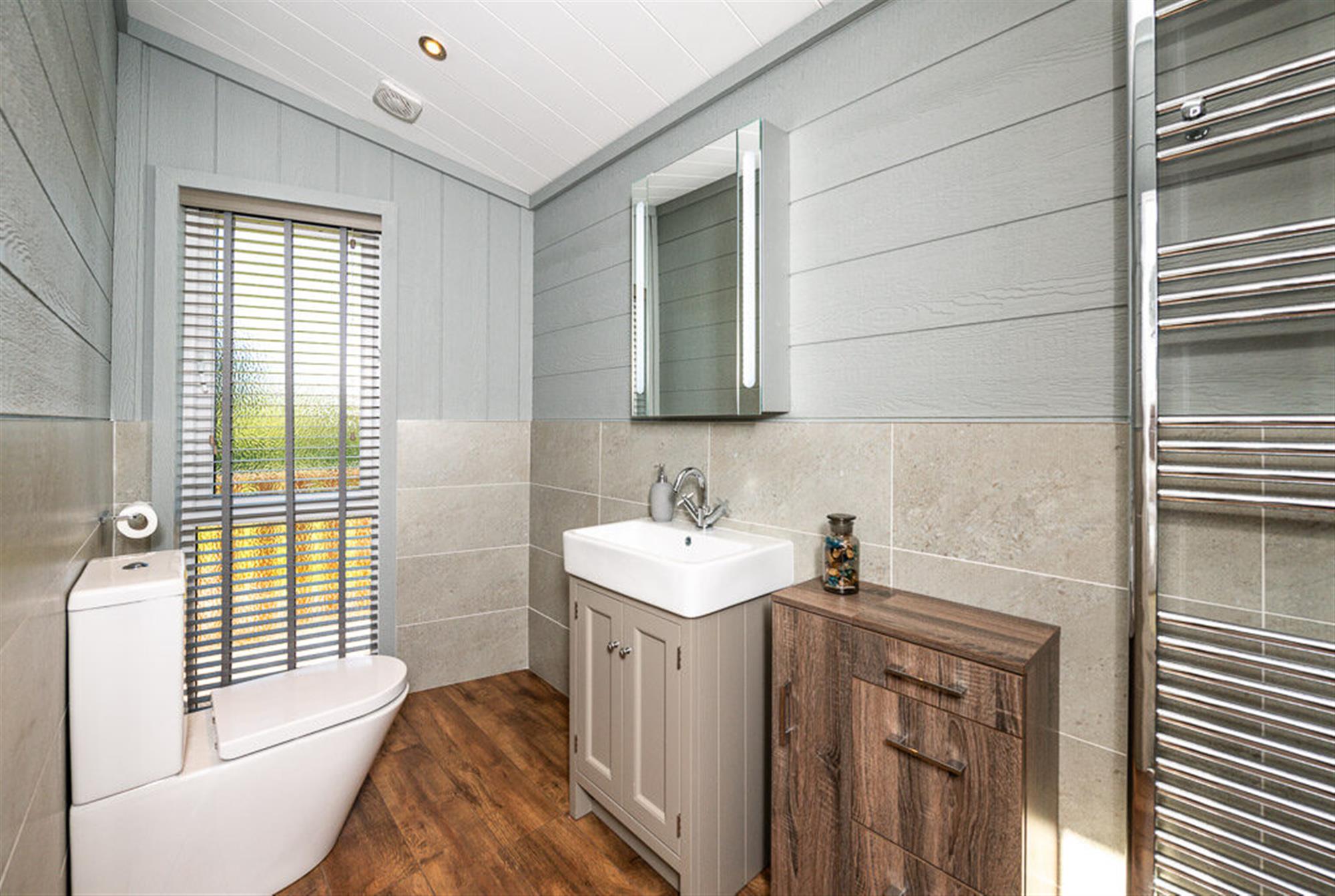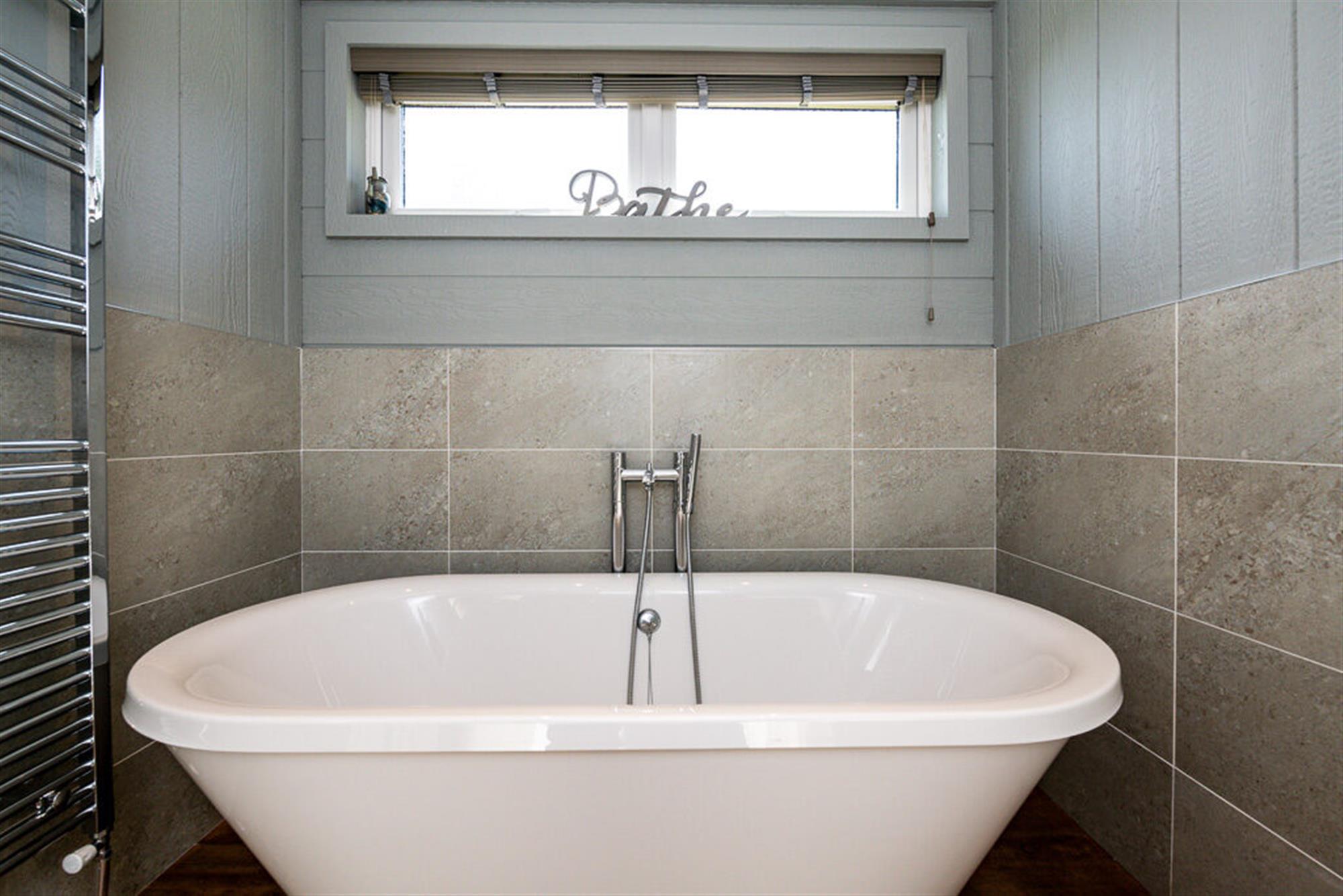 Conveniently situated across the hall from the non en-suite bedroom, the lodge also features a lovely, fully fitted bathroom with feature "roll top" bath, WC, fitted washbasin and heated towel rail,