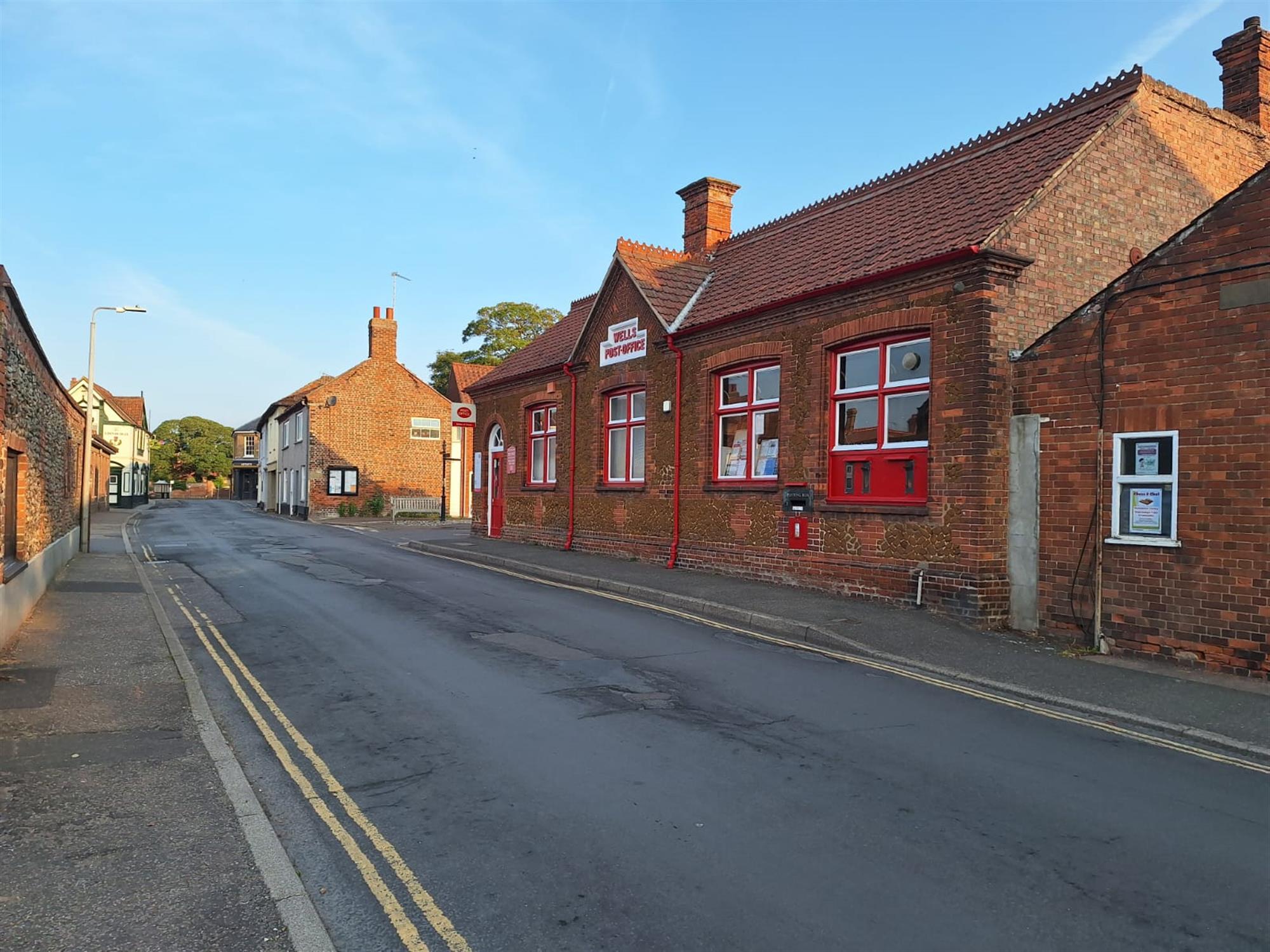 - Wells-next-the-Sea Post Office opens 9.00 a.m. to 5.30 p.m. Monday to Saturday and does not open on a Sunday.
