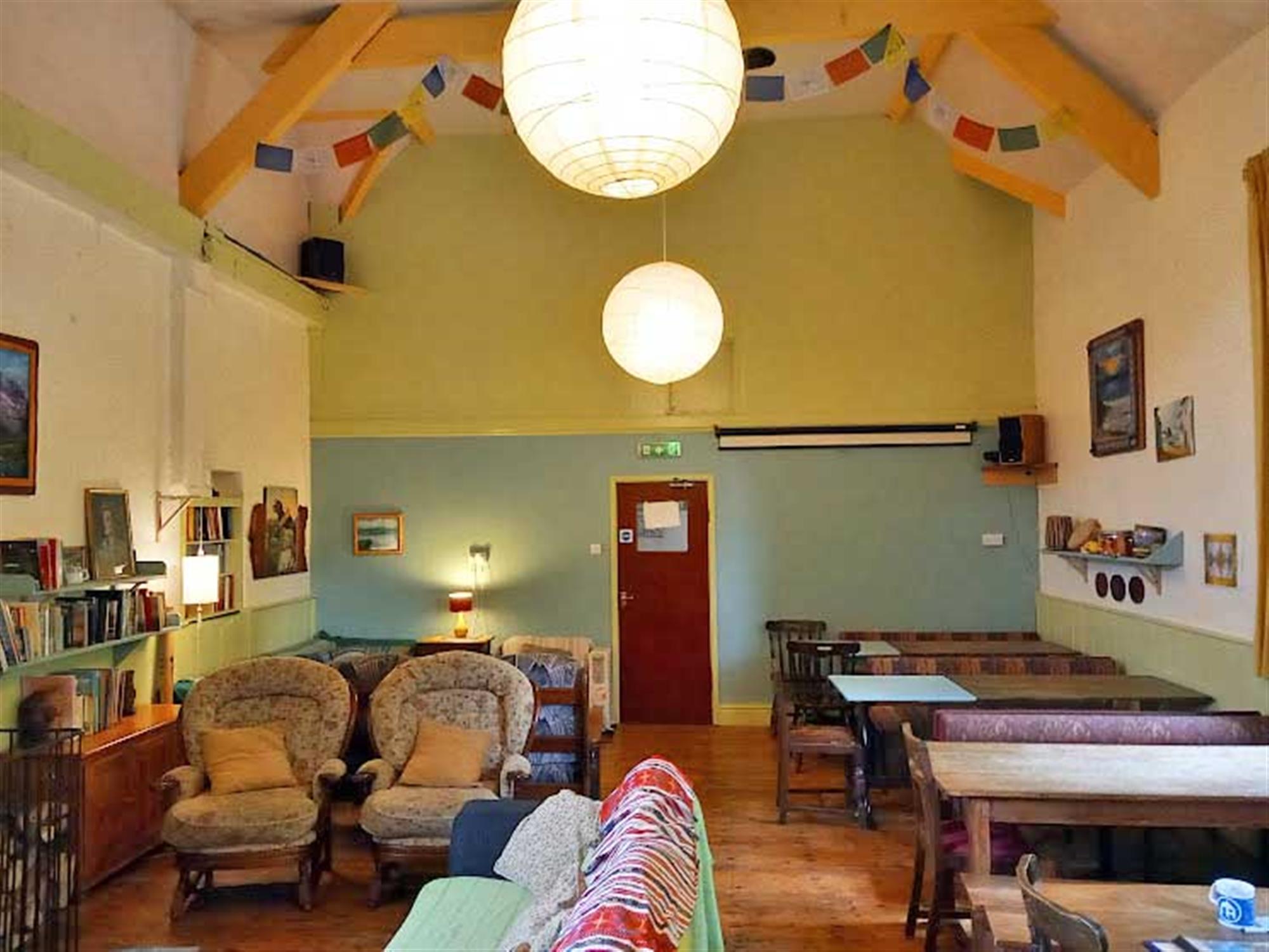 Entrance provides access into the open plan FORMER SCHOOL ROOM which is 9mx6m and features cast iron log burner and fireplace, adjacent to which is the LIBRARY and LOUNGE area. Standing opposite is a DINING AREA which consists of 4 refectory tables and is arranged to seat 40 diners. Forming part of the main building, with external access only, is a good size DRYING ROOM.