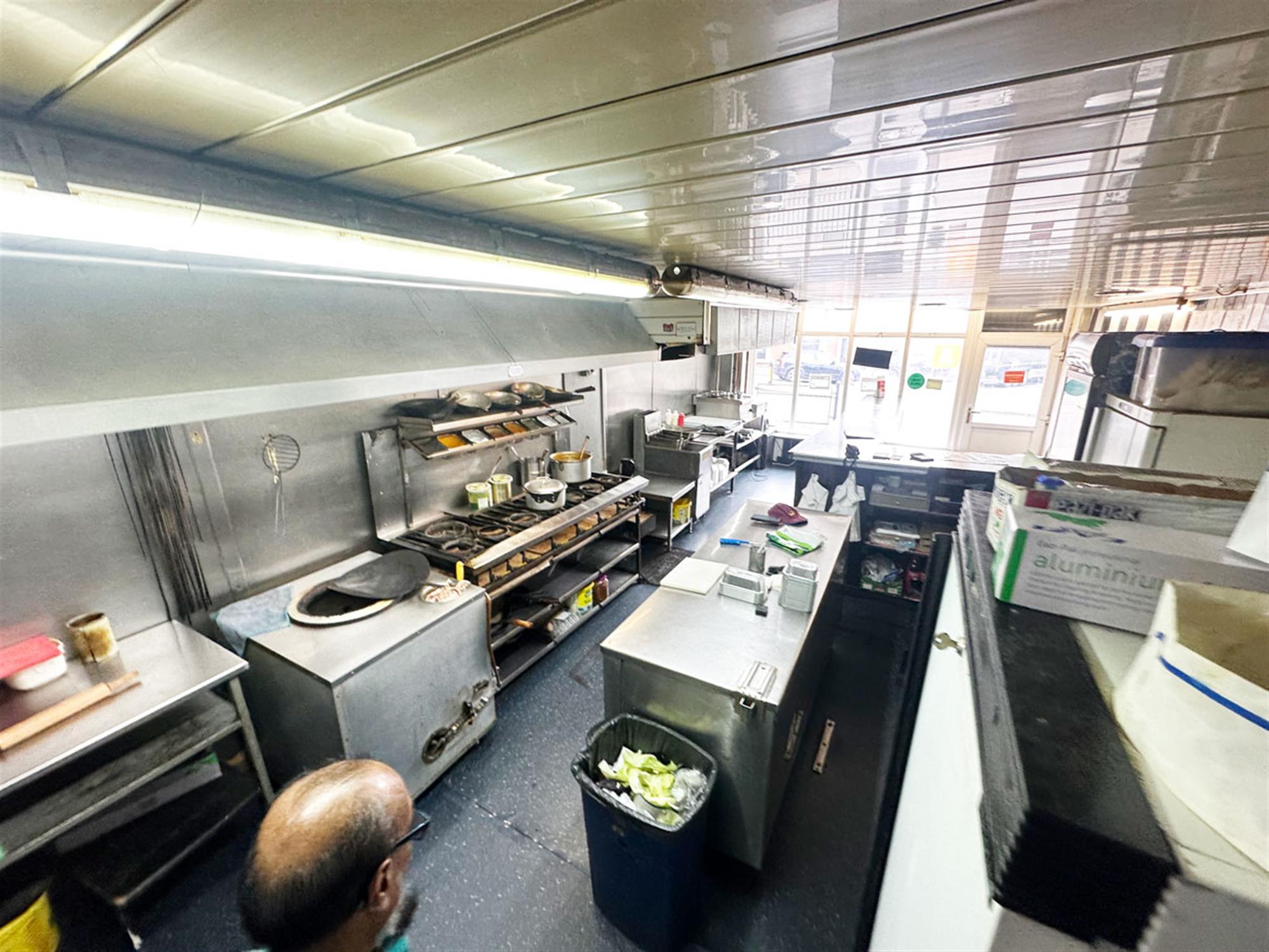the shuttered fronted premises comprise of entrance, small waiting/ordering area, āLā shaped service counter, open plan kitchen provides kebab area, 8 burner stove, tandoor oven, preparation area, cold storage, washing up room, exit to yard area.