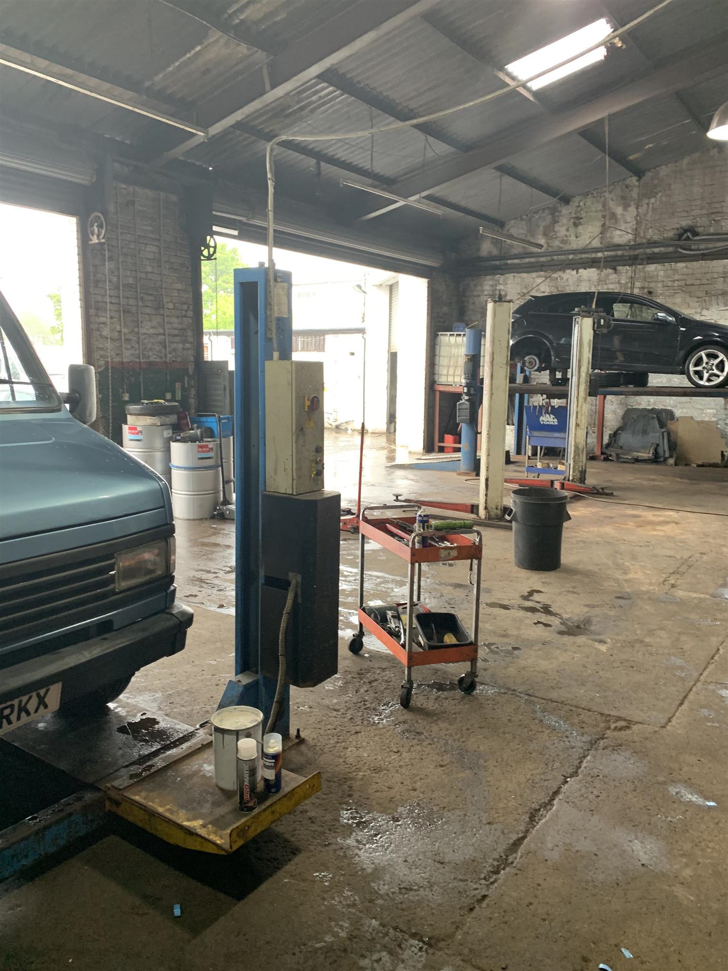 Affording easy vehicle access by means of 2 x large, full-height steel industrial roller shutter doors, these substantial and extremely well fitted, single-storey leasehold commercial premises provide excellent and highly functional internal business accommodation, which briefly comprises the main, bright and spacious, open-plan general workshop with concrete flooring, high ceiling, diffused fluorescent lighting throughout, extensive tool and tyre storage racking and workbench area.