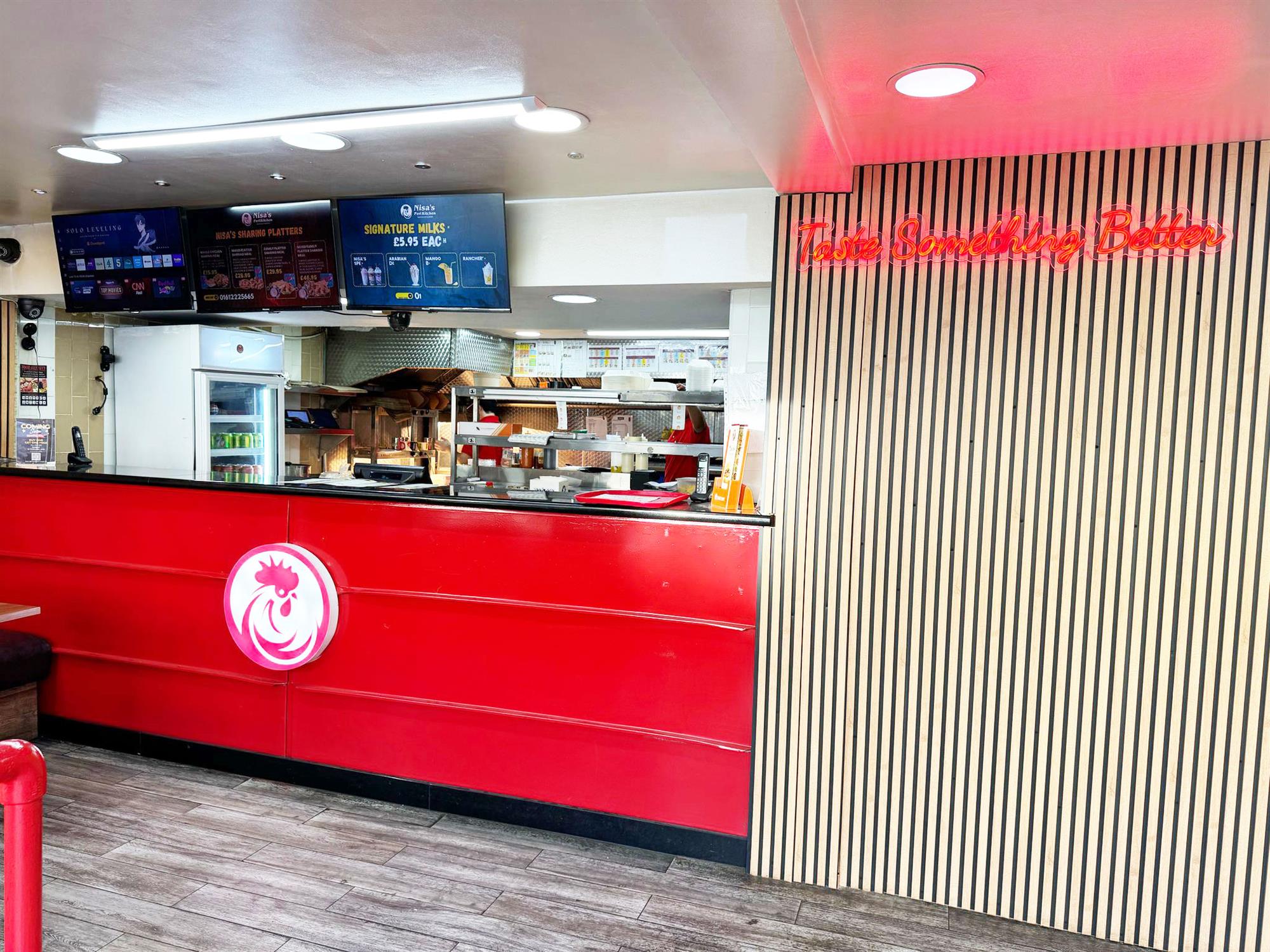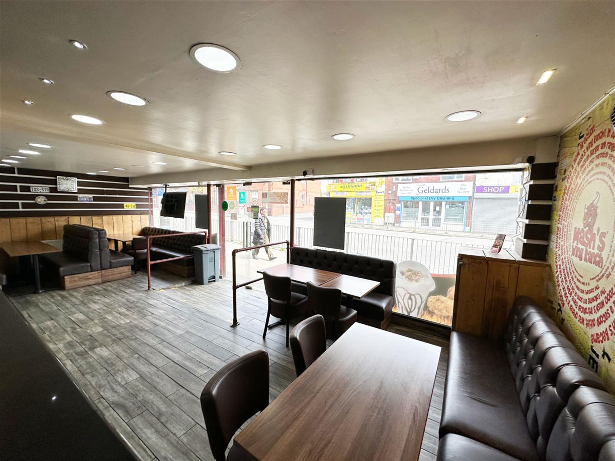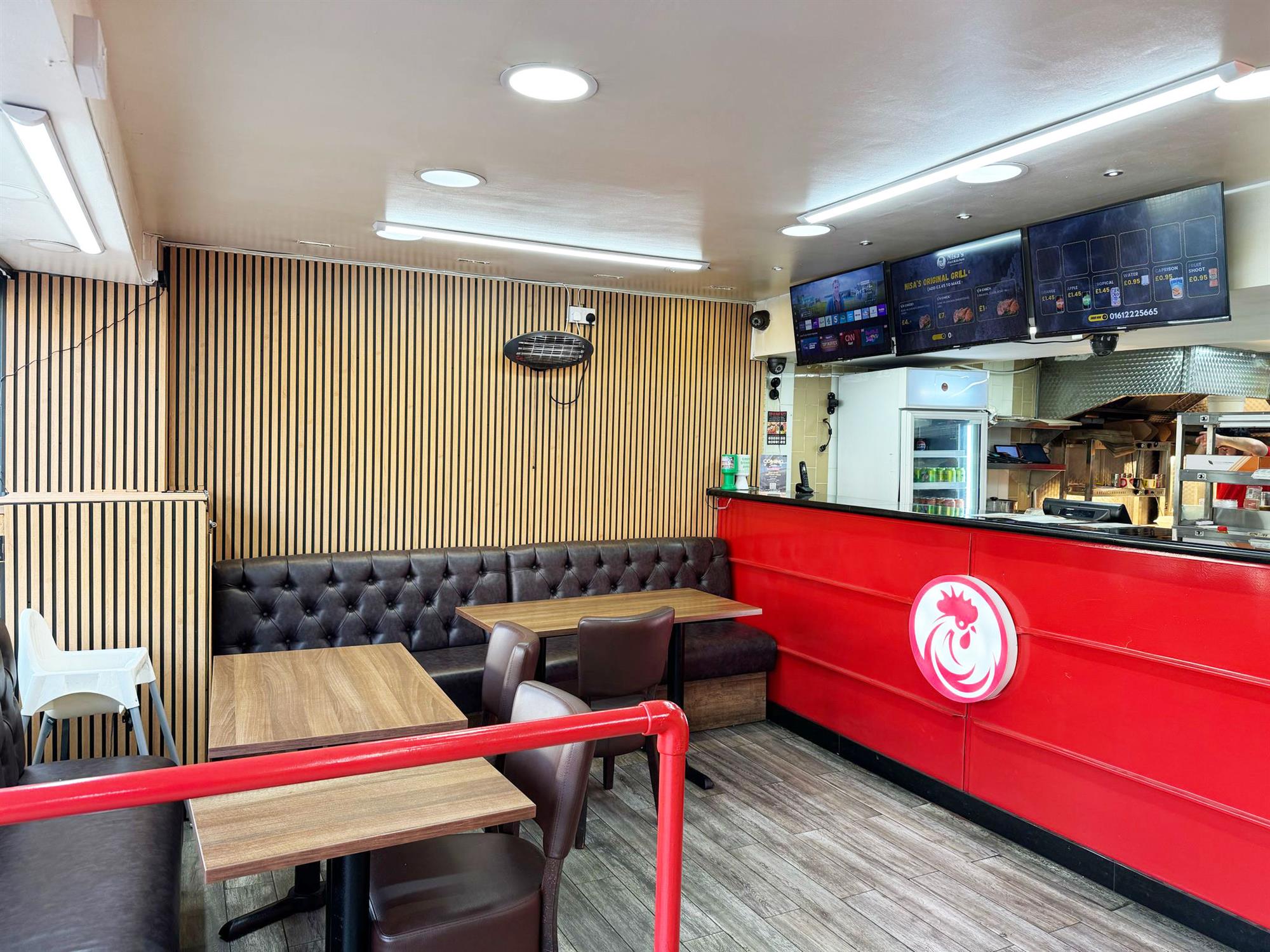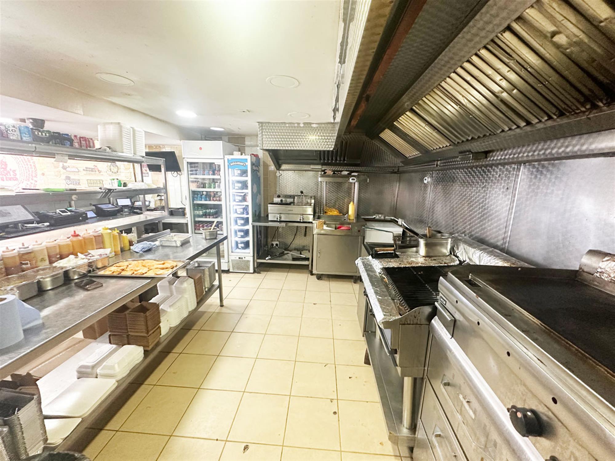 Double fronted glass fronted unit, electric shutters, central entrance, seating for 35, service counter, open kitchen providing heated pass, prep oven, large charcoal grill, hot plate, frying area, dessert & shake preparation area, WC, storeroom, prep room with washing up area, convection oven, walk-in fridge, walk-in freezer & exit to bin area.