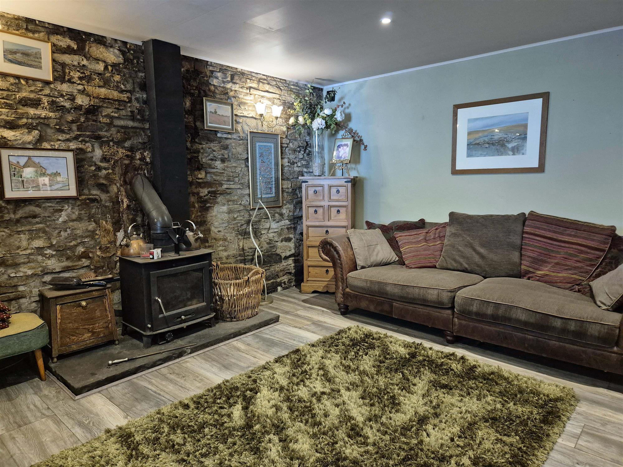 Accessed from the main entrance to the ground floor is a spacious LOUNGE with wood flooring and feature fireplace with log burner.