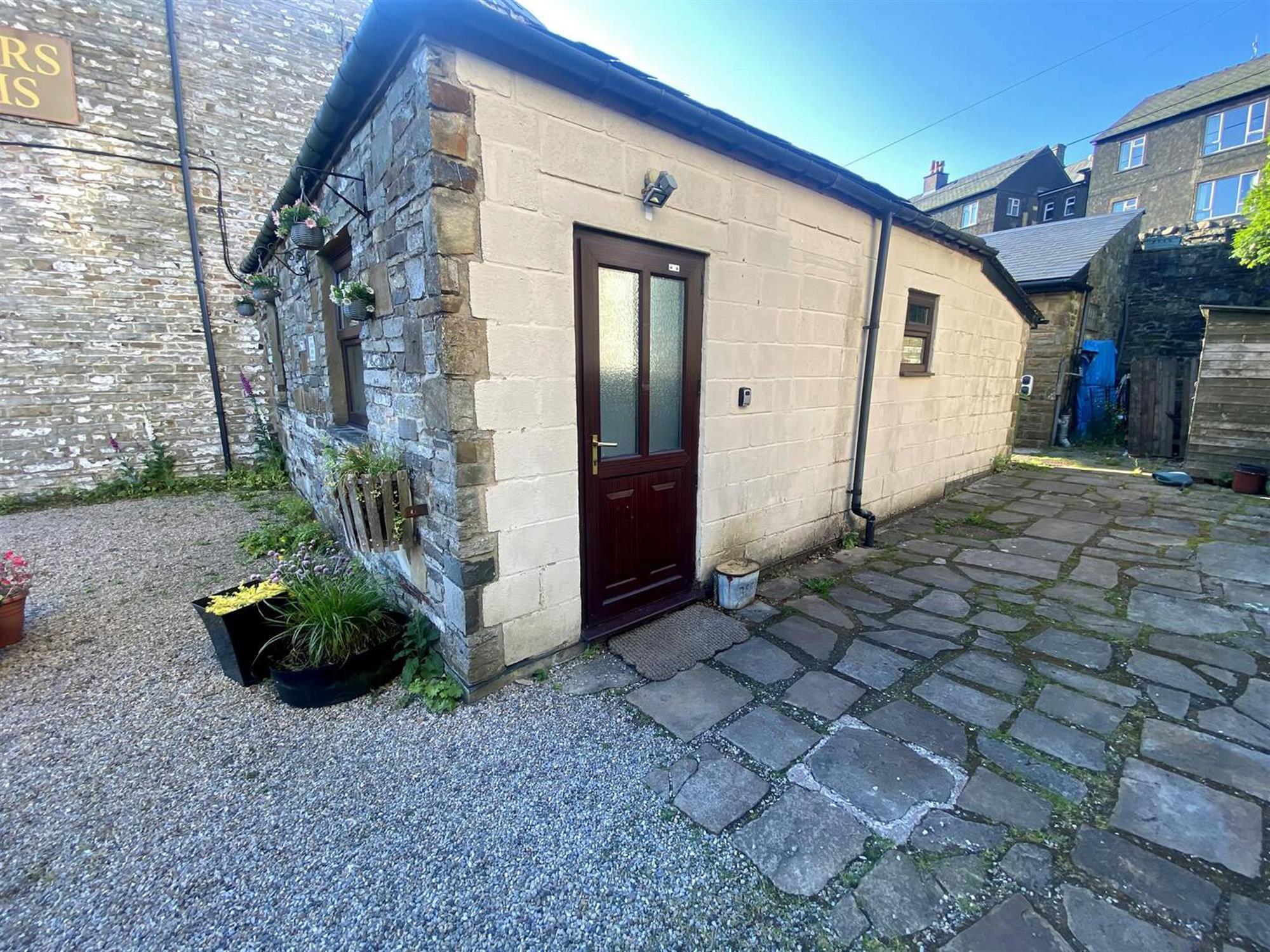 Two stone OUTBUILDINGS to the rear of the property are currently used for storage. COURTYARD leading to split level PATIO and GARDEN AREA offering hillside views. To the front of the property is the former TRADE GARDEN which would accommodate approximately 25. CAR PARK to accommodate six vehicles. Three SINGLE GARAGES.