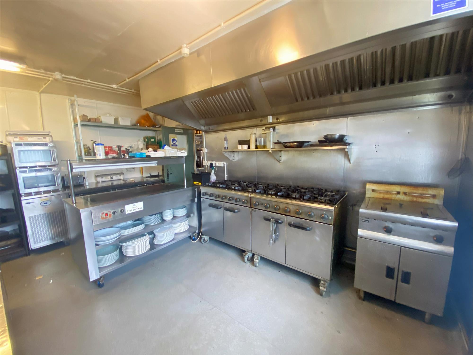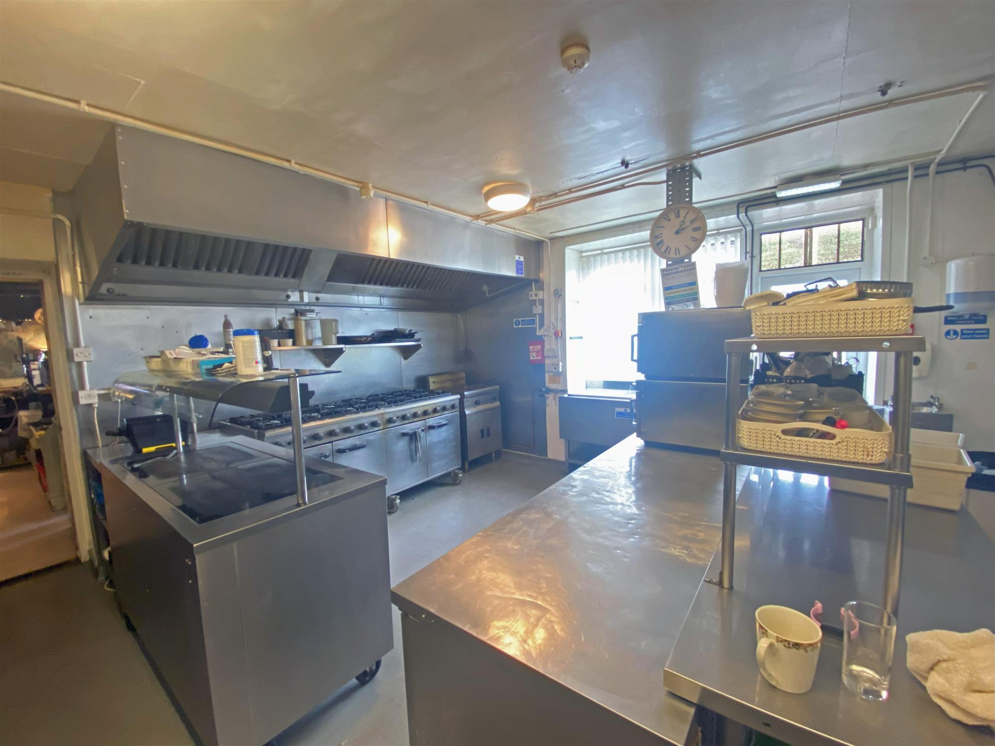 TRADE KITCHEN of a good size and well equipped with catering equipment and effects. Separate PANTRY and STOREROOM, REFRIGERATION ROOM leading to on level CELLAR.