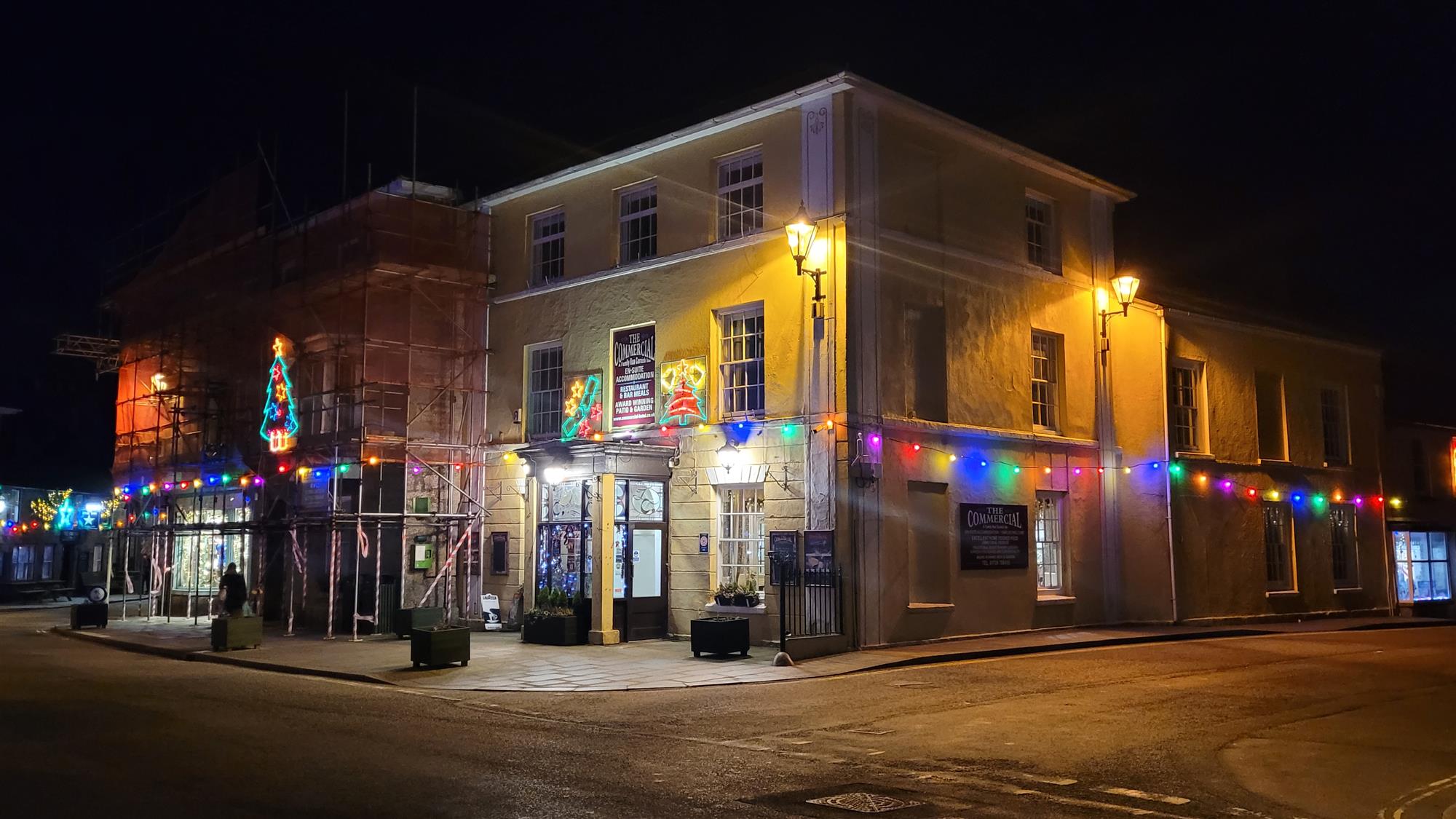 The Commercial Hotel is a Grade II Listed property with a rich history as a former coaching inn. This impressive three-storey, end-of-terrace building is constructed of traditional stone beneath a pitched tile roof, enhanced by thoughtfully added rear extensions. Among these additions are a vaulted function room, an enclosed patio, and beautifully landscaped garden areas, complete with a covered smoking area, which compliments the locals bar & residents lounge